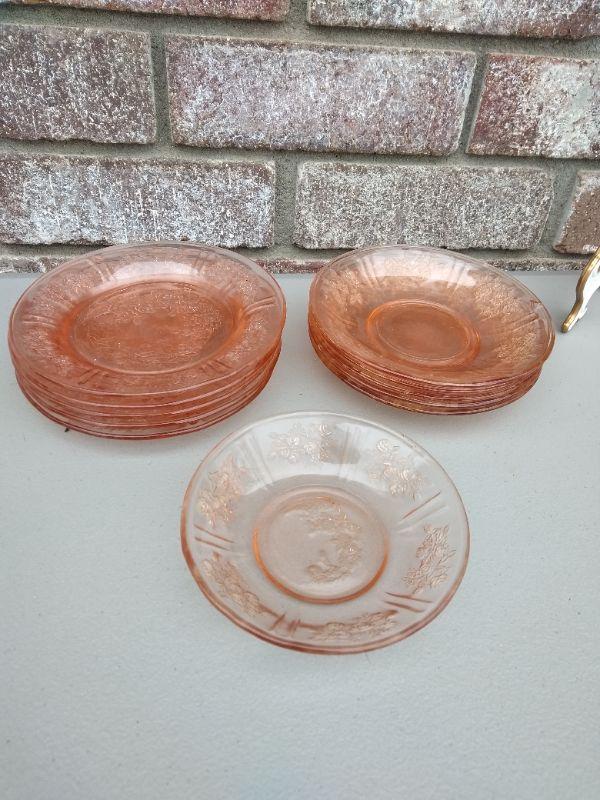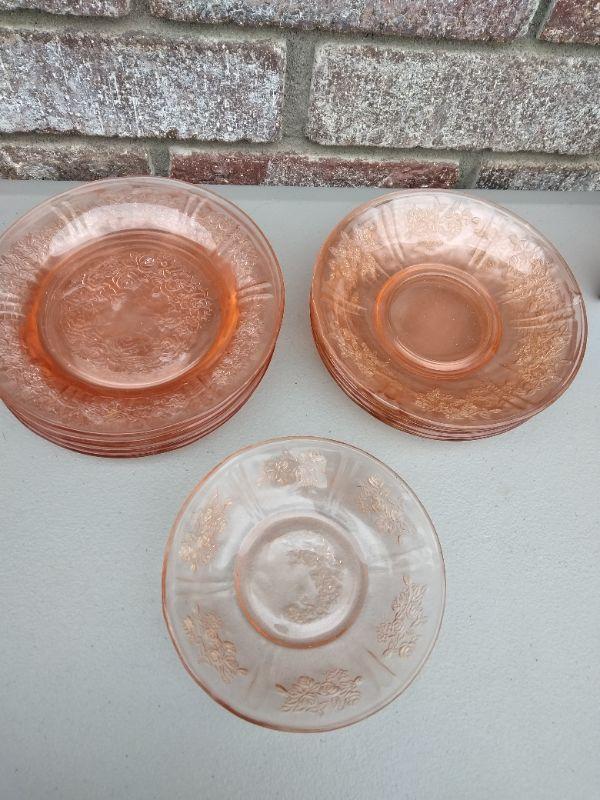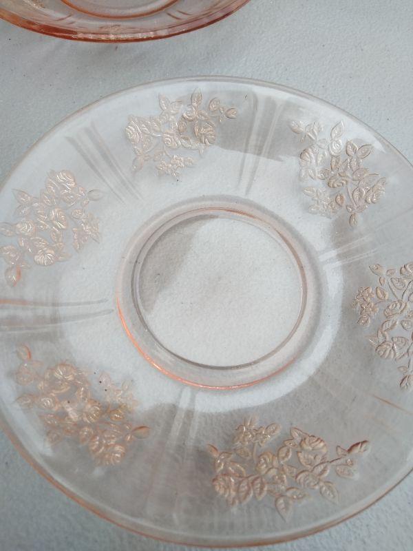 LOT 438 PINK DEPRESSION GLASS BOWLS & SNACK PLATES