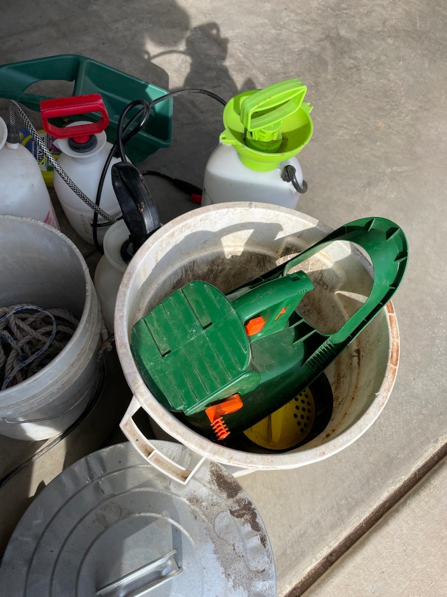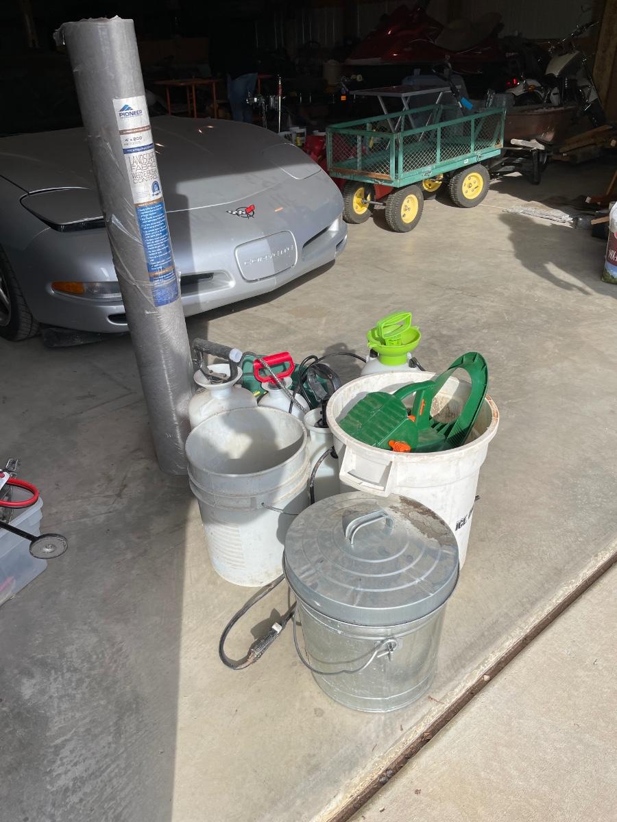Some have stuff in them, not sure of what. The weed mat roll is brand new!