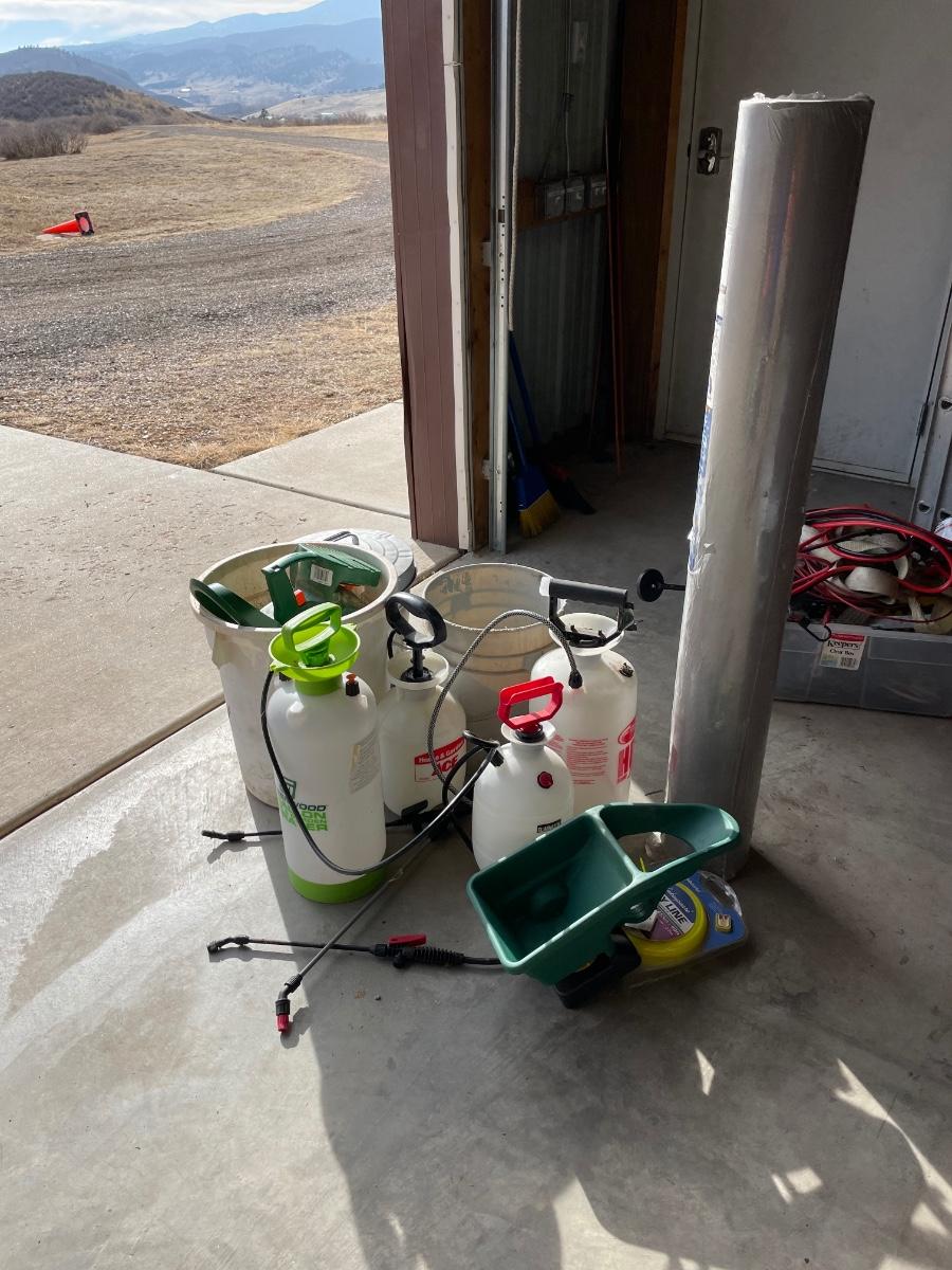 Lot 439 numerous sprayers, fertilizer spreaders