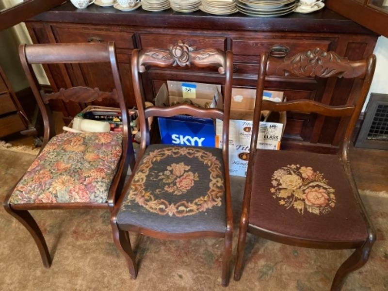 Lot 43DR. Three occasional chairs, one needlepoint--$60