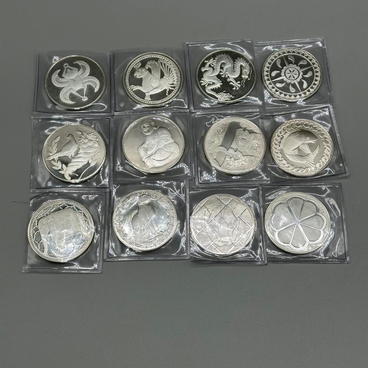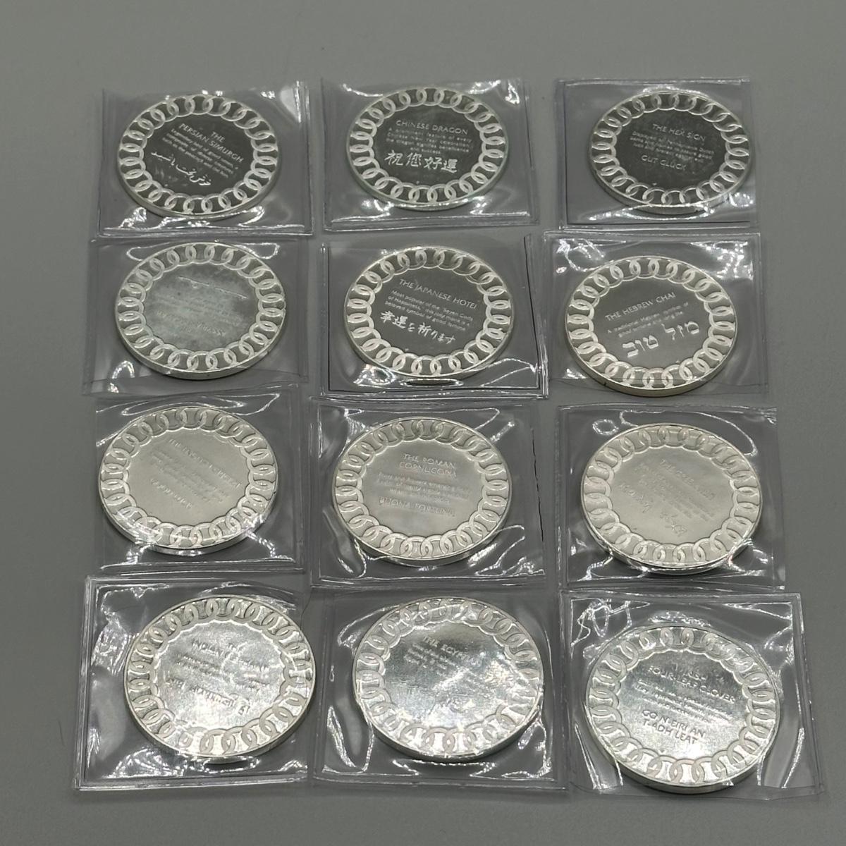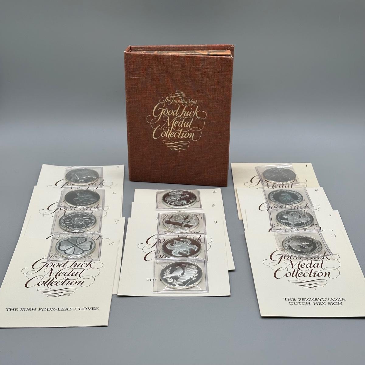 LOT 44: 1977 Franklin Mint Good Luck Sterling Silver Medal Collection - 12 Medals + COAs