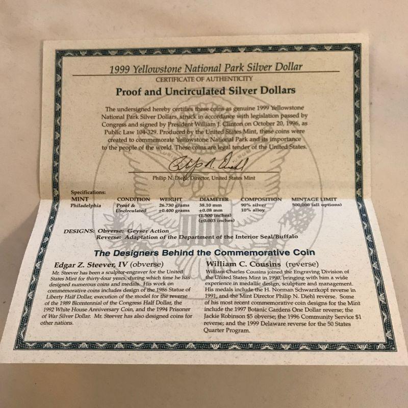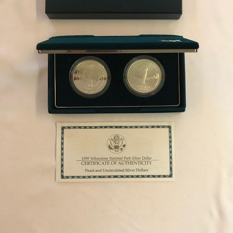 1999 Yellowstone National Park 2 Coin Commemorative Set 90% Silver