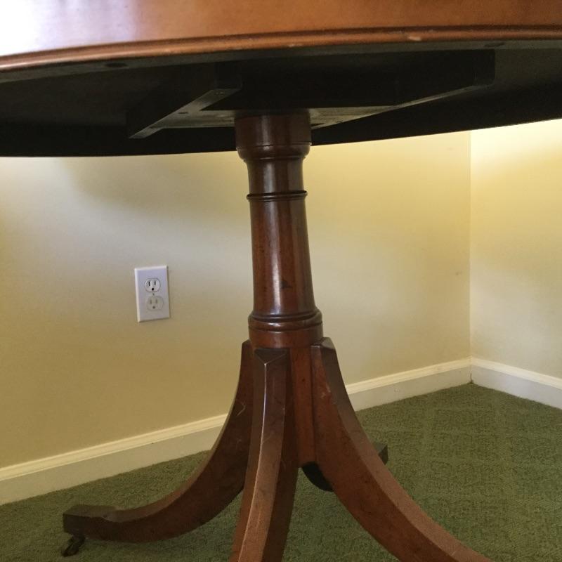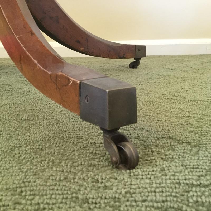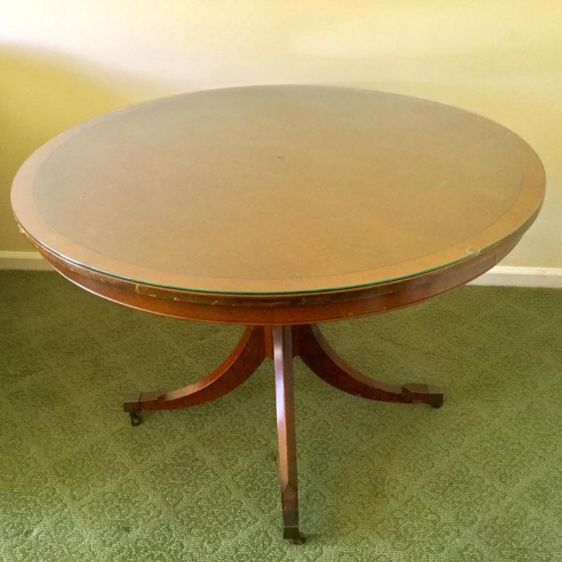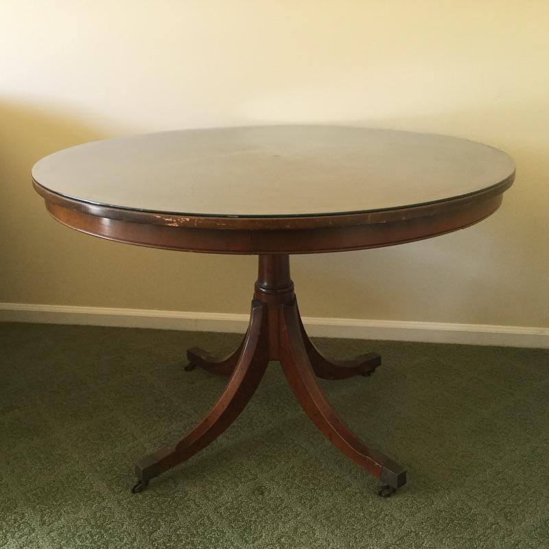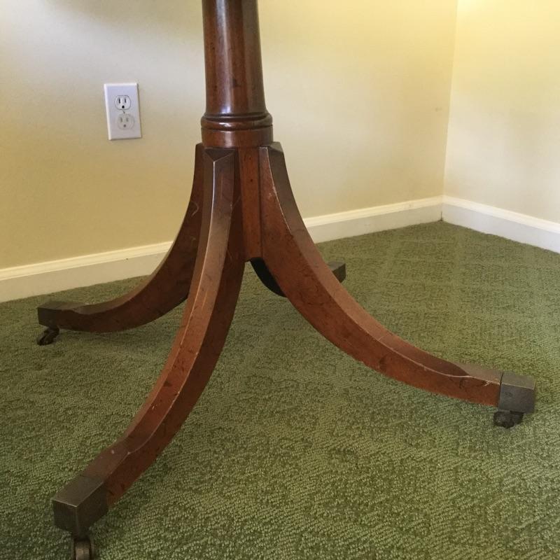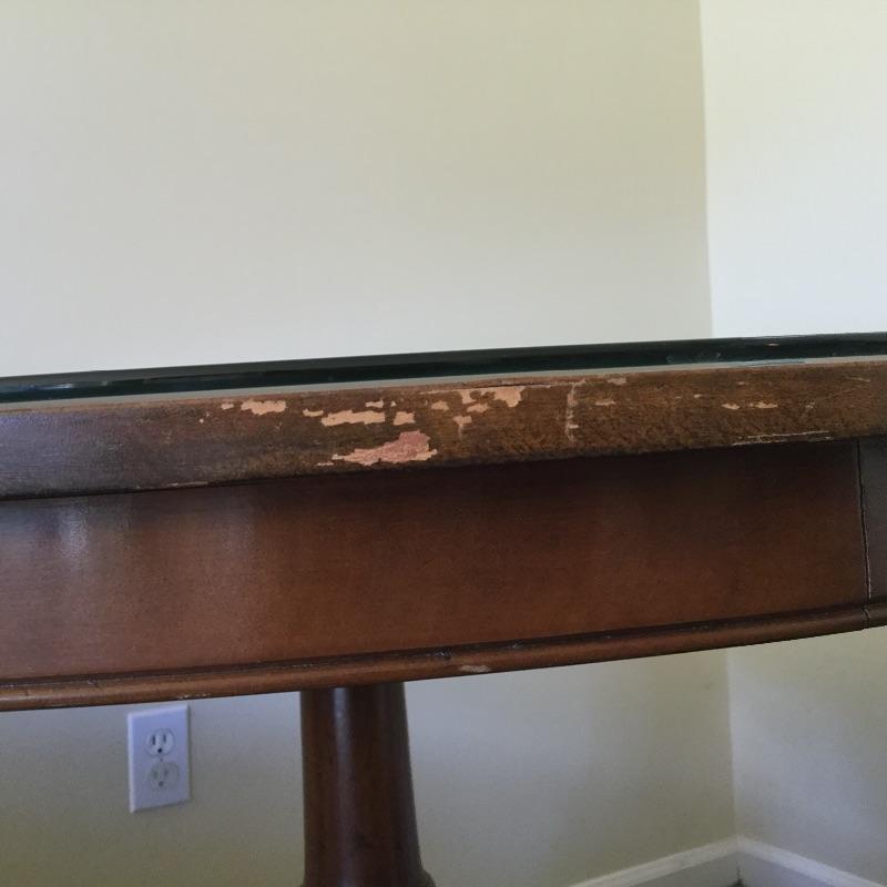 Antique Pedestal Table has Metal Caster Wheels and a Custom Made Heavy Glass Topper. Table can be used with or without Glass top as seen in Photos