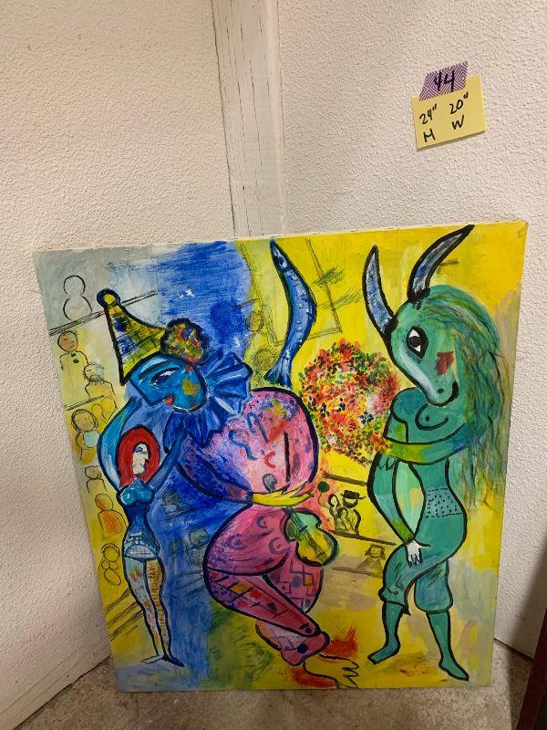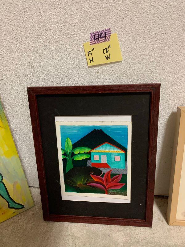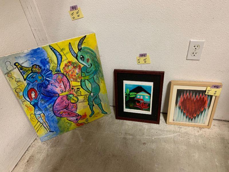 3 pieces of art: oil on canvas, house with flowers costa Rica, and heart pic.