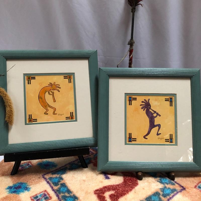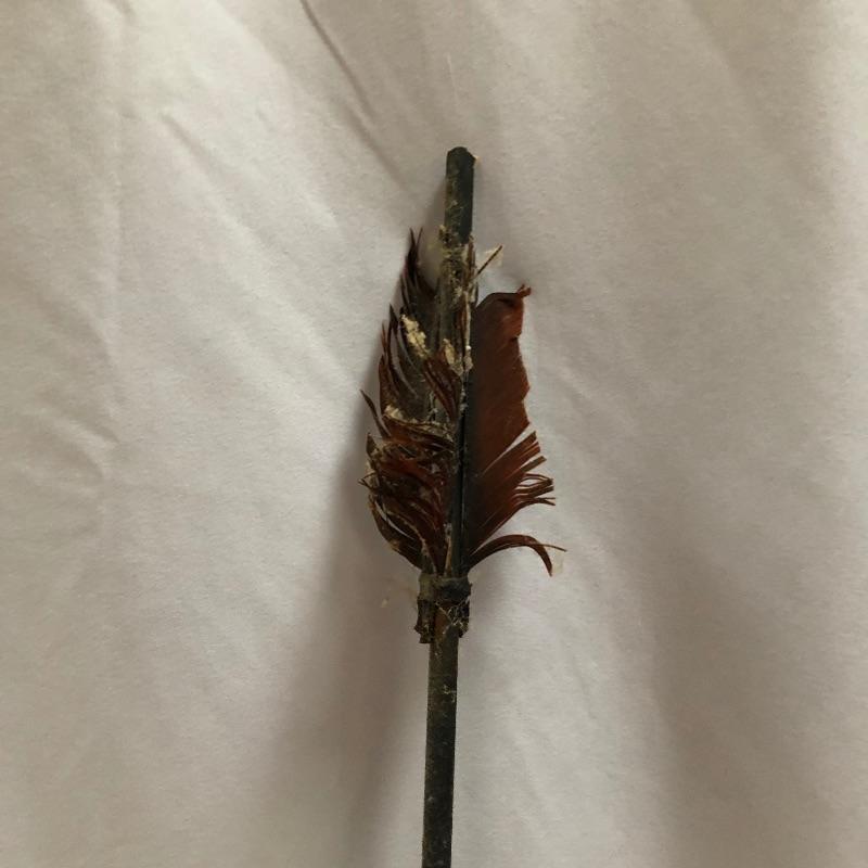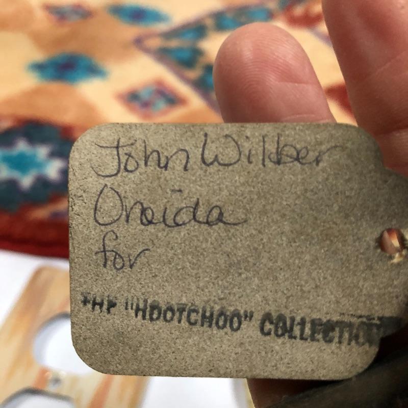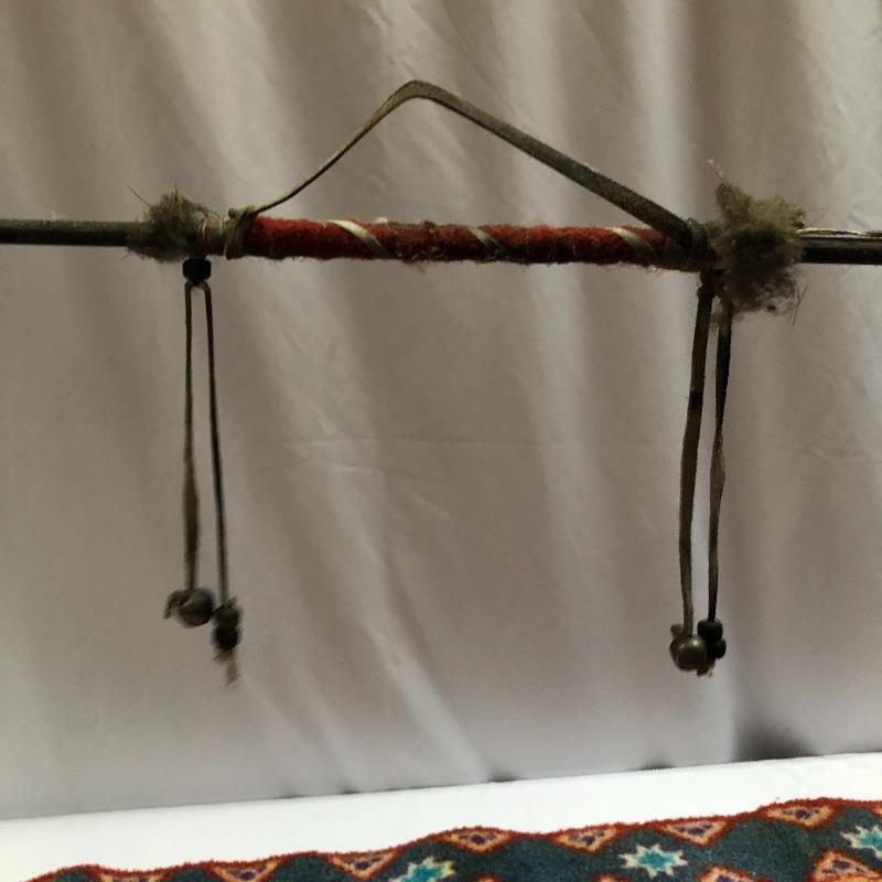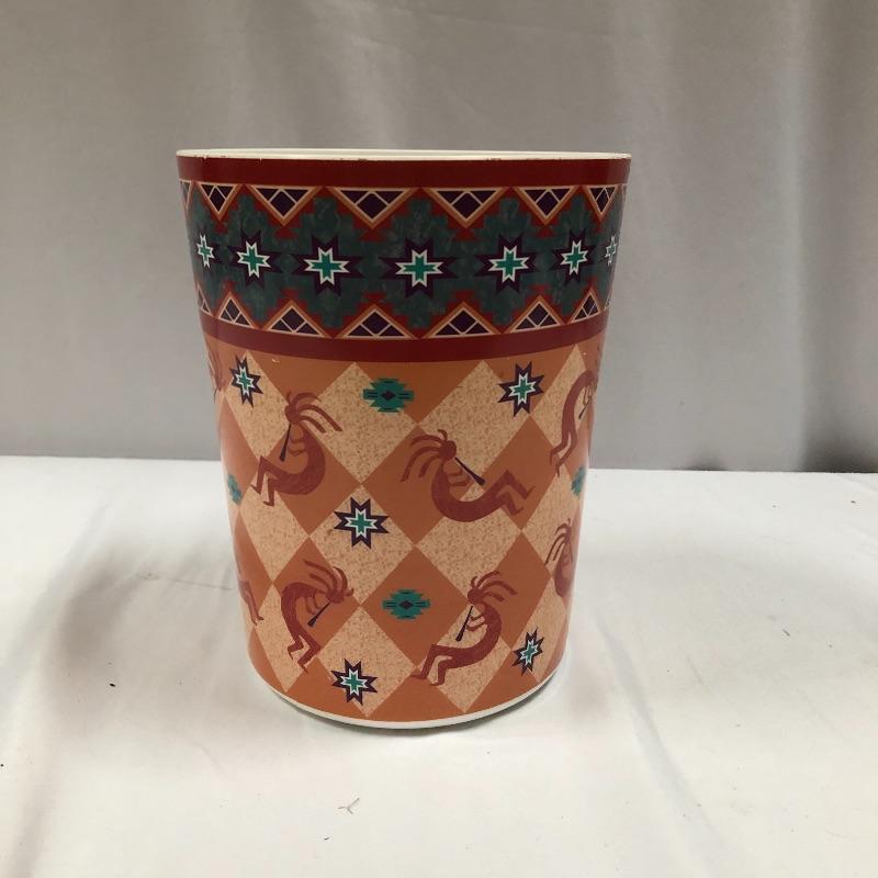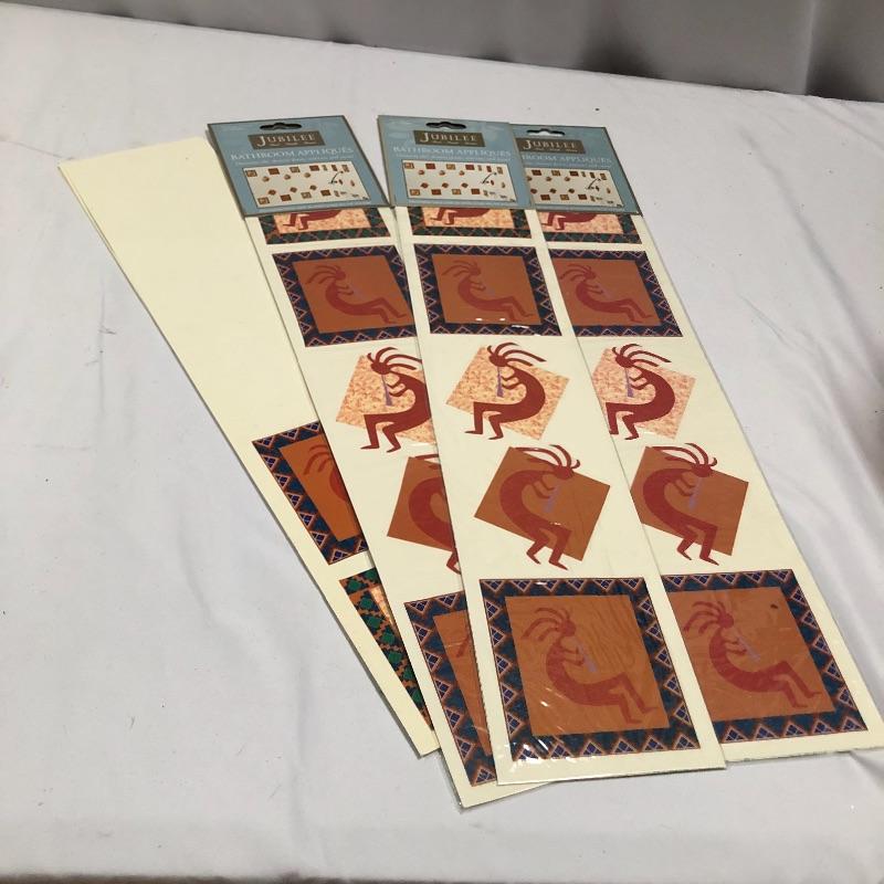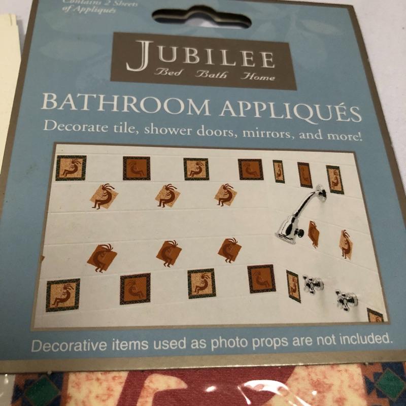 A lovely assortment of Aztec themed bathroom decor in this lot. Included is a bath mat, appliqués, framed art, hand soap dispenser and more. The spear has a label dictating “˜John Wilbur, Oreida, from the Hootchoo collection. It measures 24” long.