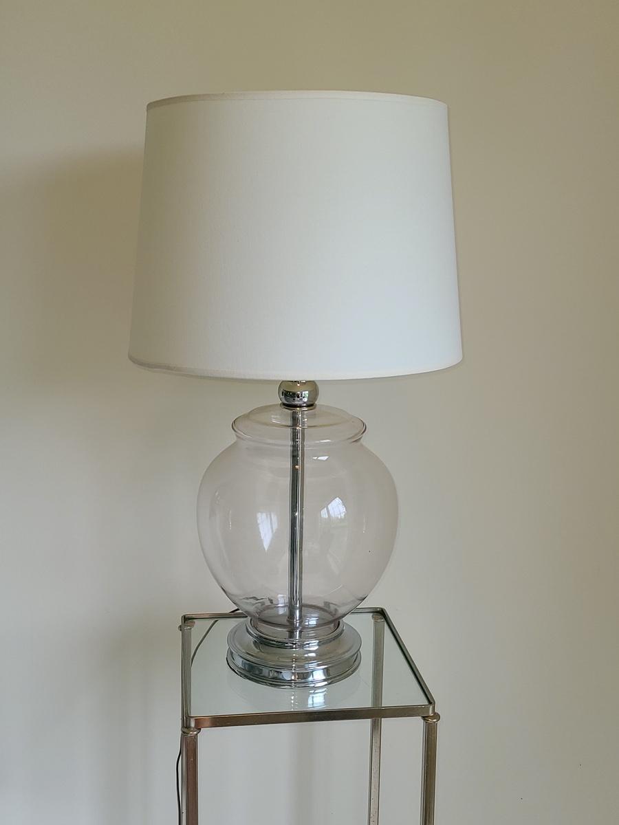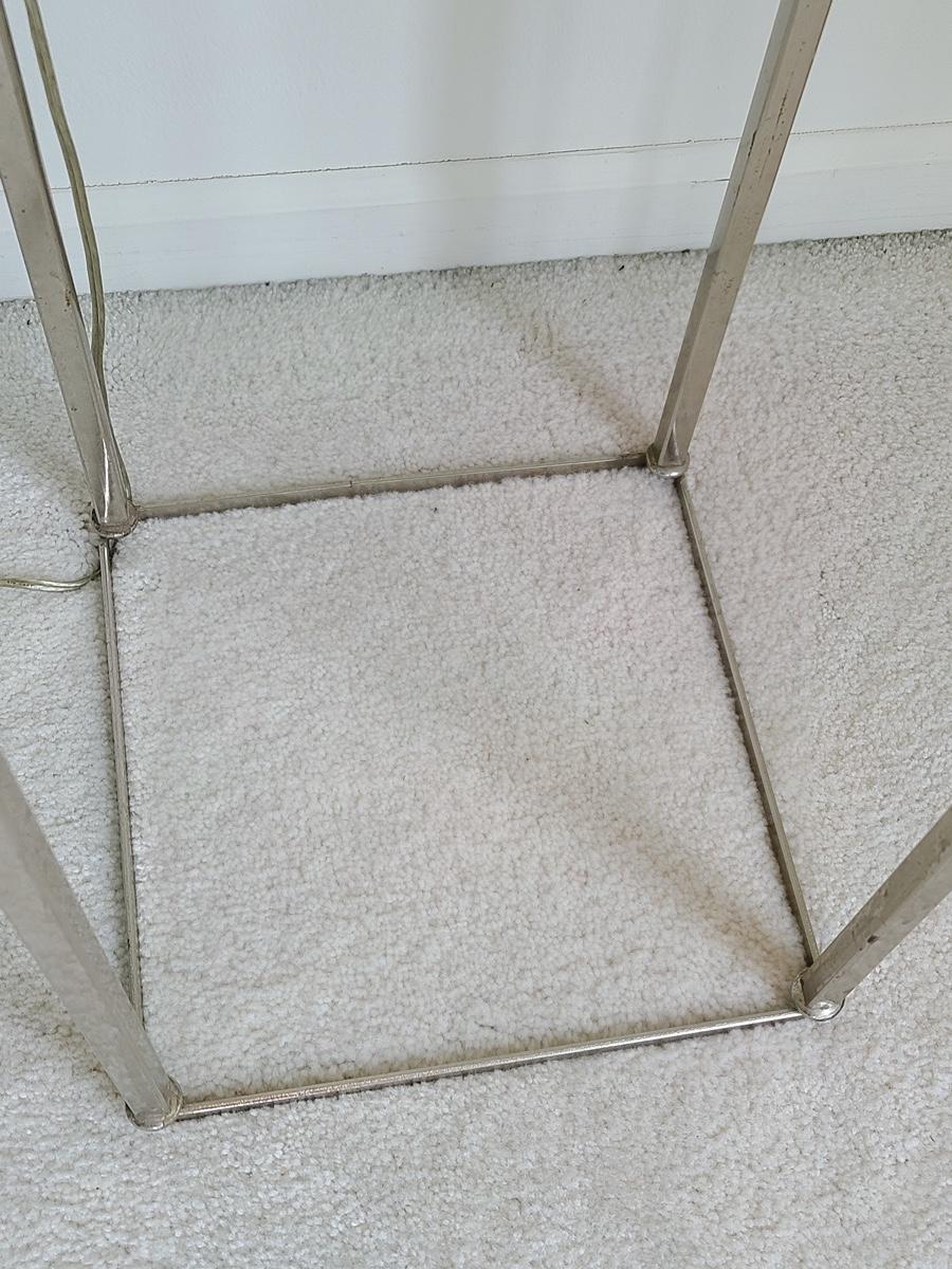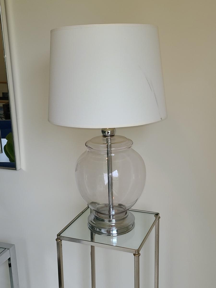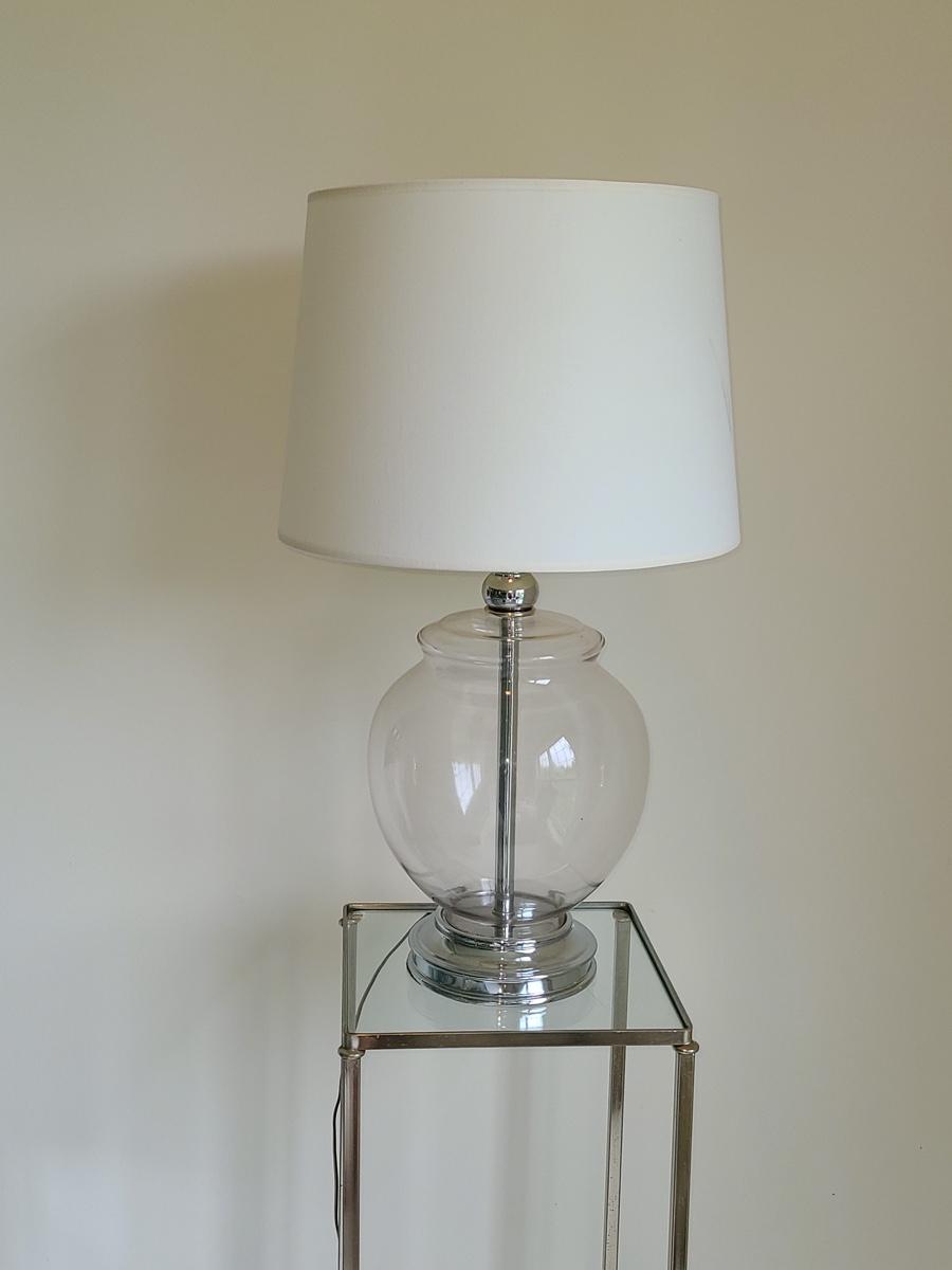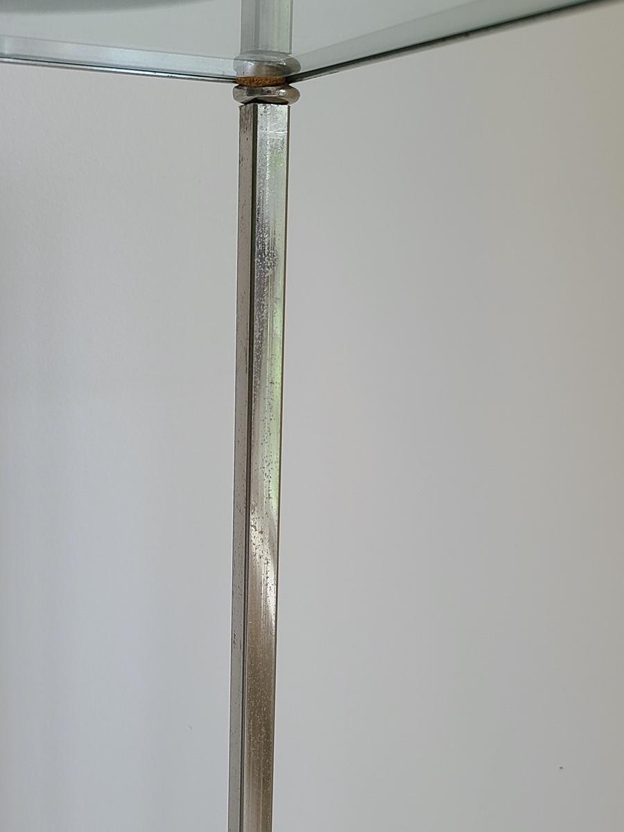 This lot is for a MCM chrome metal plant stand with glass top, and modern chrome based lamp with white shade. The white shade does have marks on back and either needs to be turned to the wall or replaced. Please see all pictures for content of the lot, condition of the lot, and measurements if taken. Pictures are the best representation of the items listed and items are untested unless indicated in description. Thank you for looking and have fun bidding![