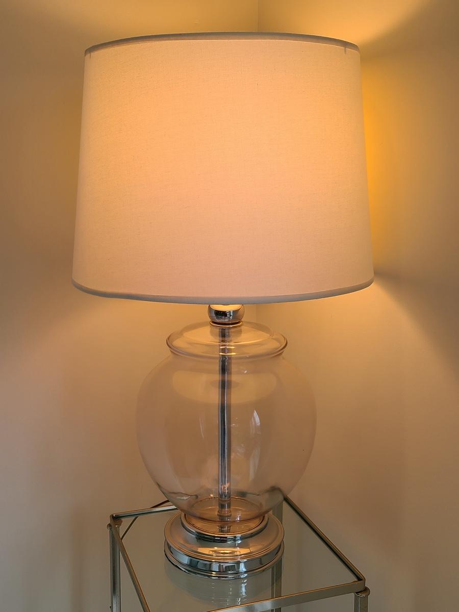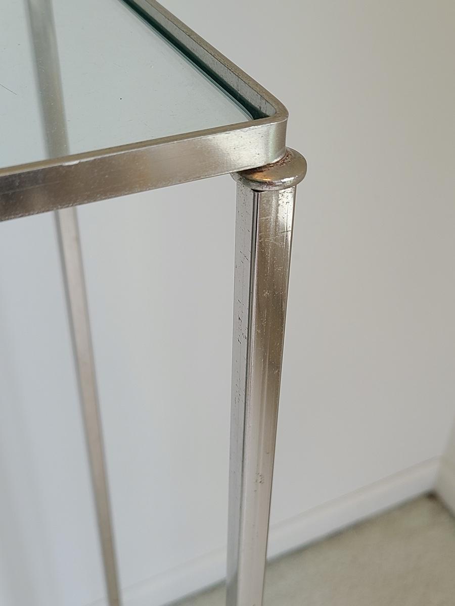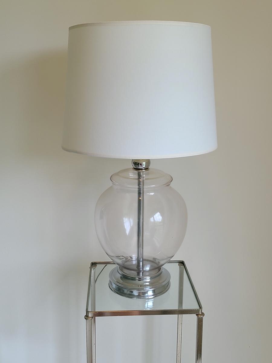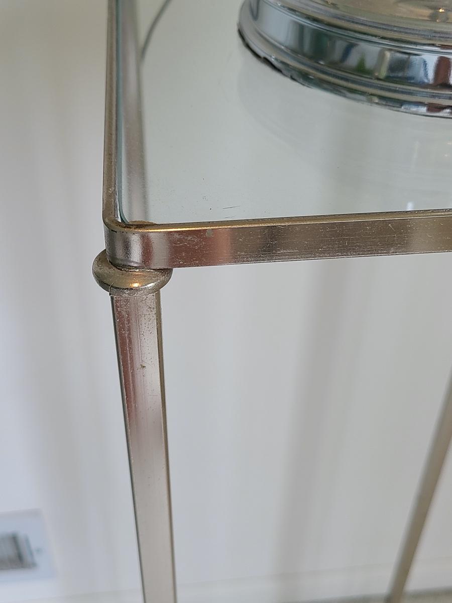 This lot is for a MCM chrome metal plant stand with glass top, and modern chrome based lamp with white shade. The white shade does have marks on back and either needs to be turned to the wall or replaced. Please see all pictures for content of the lot, condition of the lot, and measurements if taken. Pictures are the best representation of the items listed and items are untested unless indicated in description. Thank you for looking and have fun bidding![