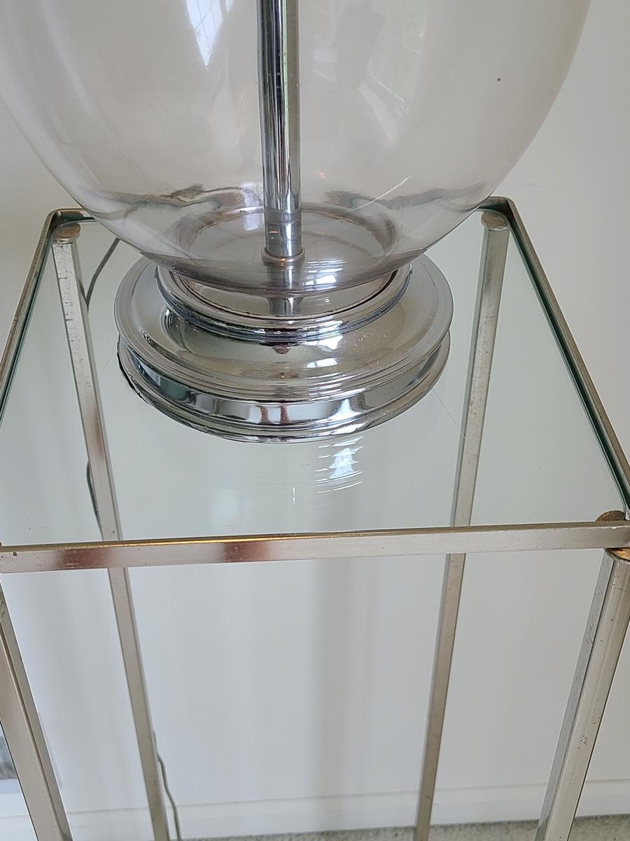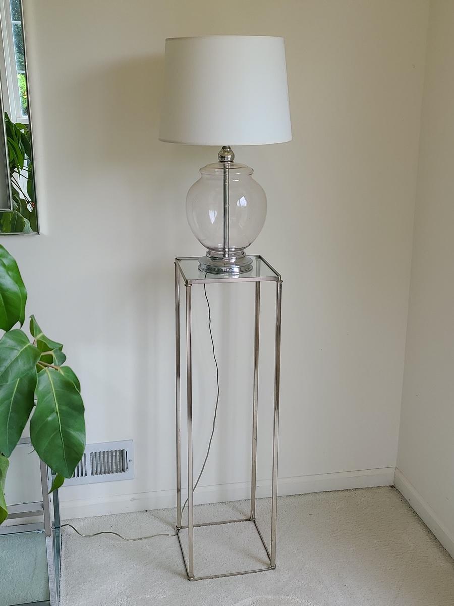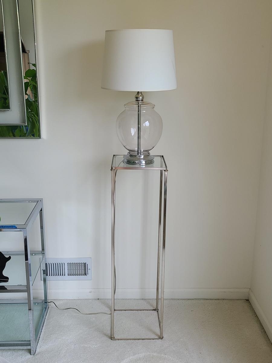 Lot 44: MCM Chrome Plant Stand/Accent Table and Lamp
