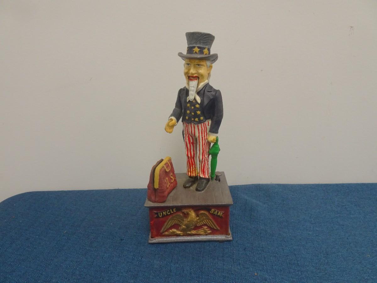 LOT 44. VINTAGE CAST IRON BANK UNCLE SAM