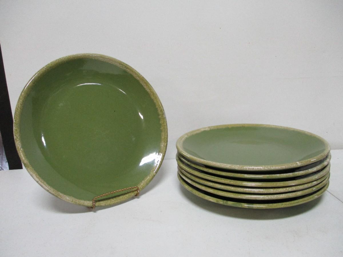 7 Hull Pottery Avocado Green Oven Proof Plates