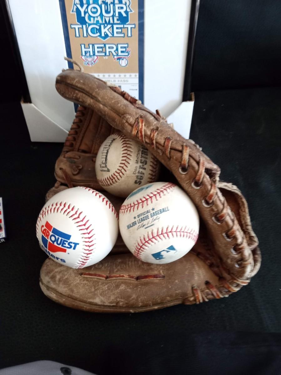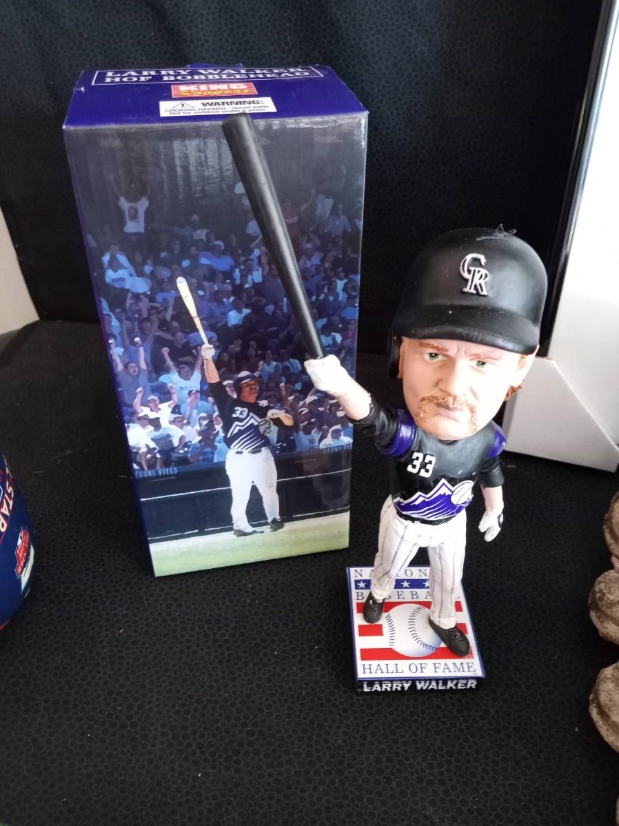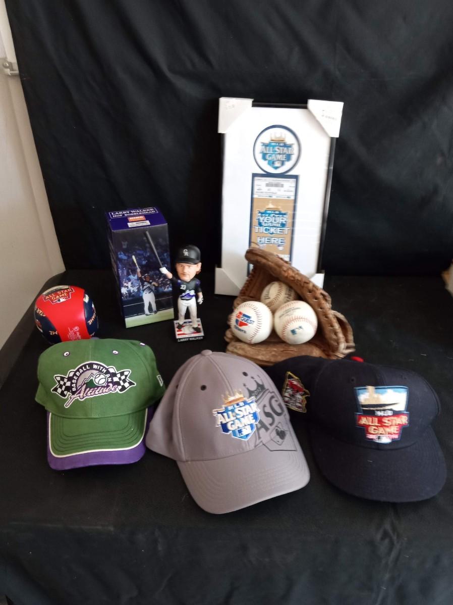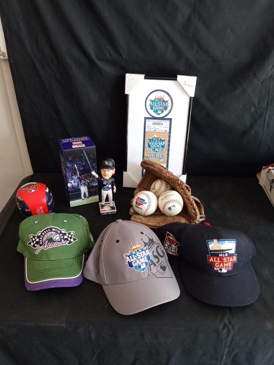 LARRY WALKER BOBBLEHEAD, BASEBALLS, MITT, FRAME FOR AN ALL STAR GAME TICKET