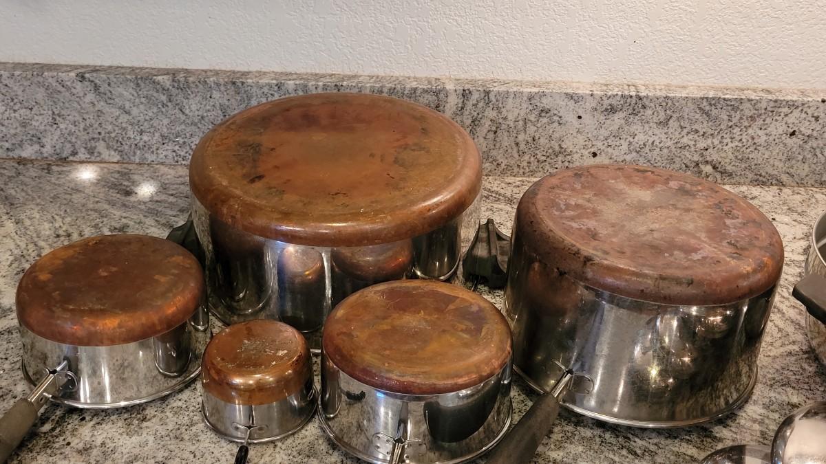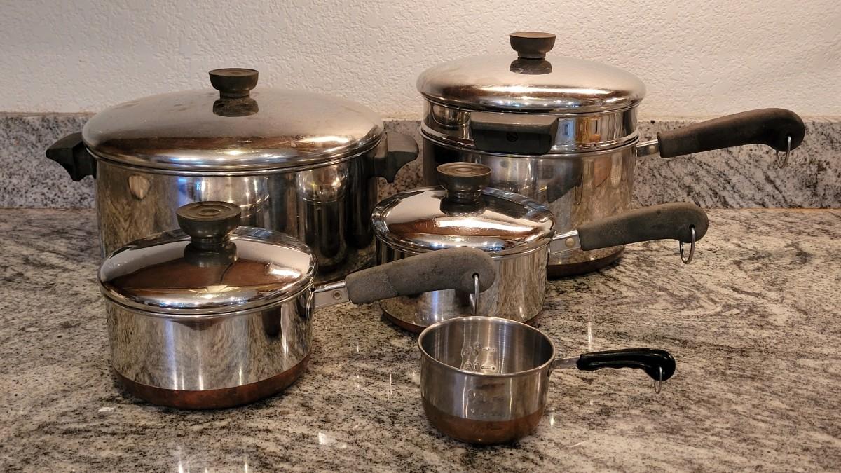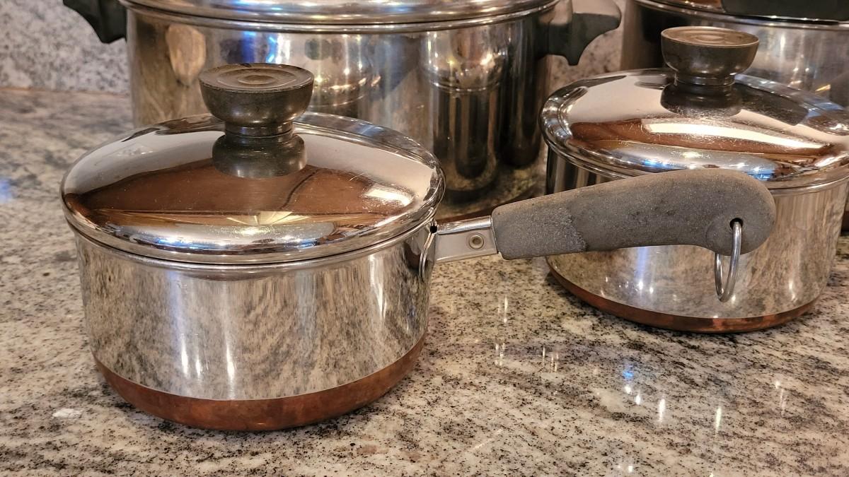 Lot 44: Vintage Copper Clad Bottom REVERE WARE Pots & Pans with Lids