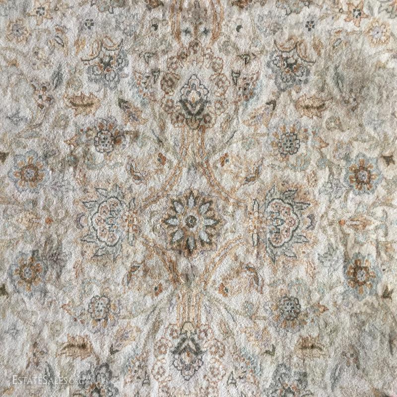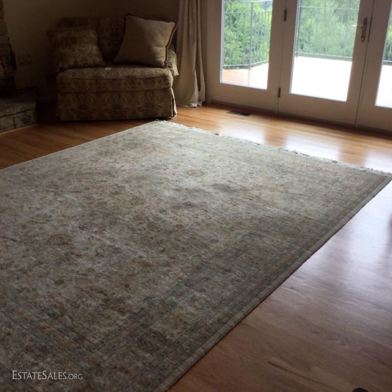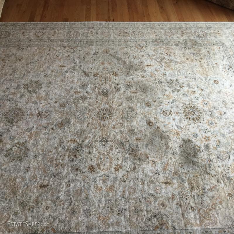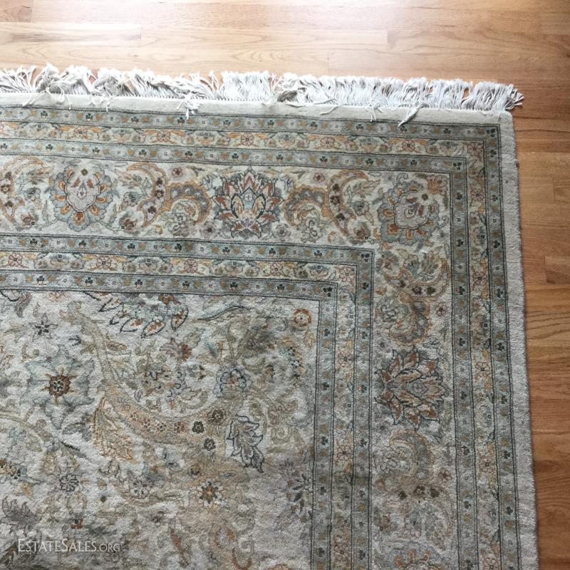 Large beige Oriental rug, 8' x 10', from Bloomingdale's.