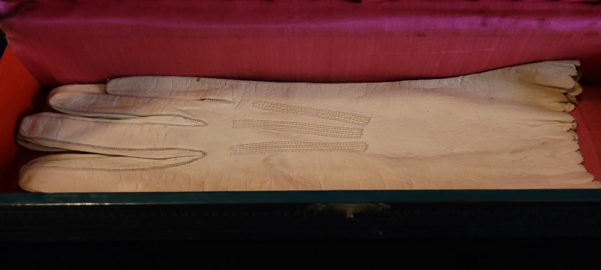 Lot 44: Antique Celluloid Design Trinket Box w/ Ladies White Gloves