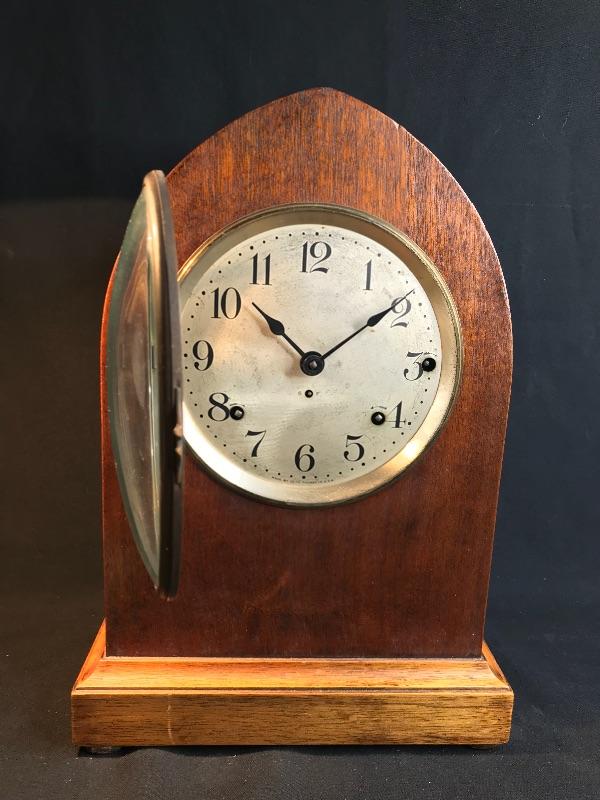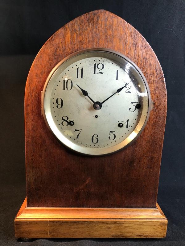 Cathedral style Seth Thomas mantle clock in working condition. Please see all pictures for content of the lot, condition of the lot, and measurements if taken. Pictures are the best representation of the items listed and items are untested unless indicated in description. Thank you for looking and have fun bidding!