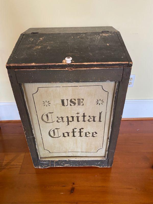 Lot #44 Large Antique Wooden Coffee Storage Bin