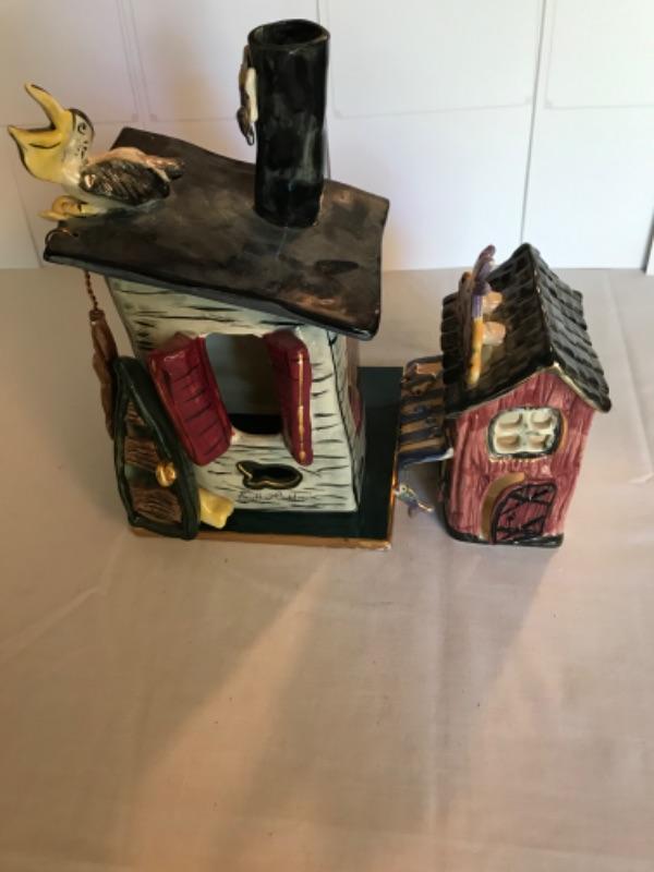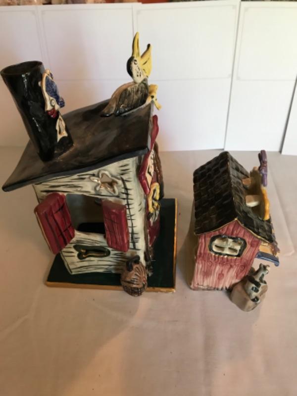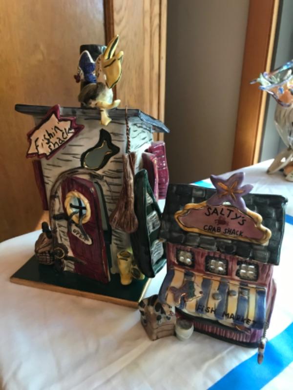 Fishin Shack 10” tall. Salty’s Crab Shack 5-1/4” tall. Signed Heather Goldminc