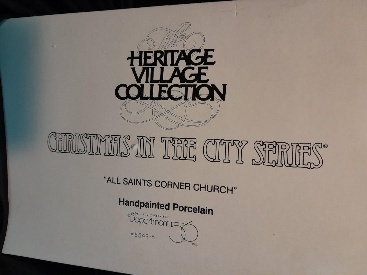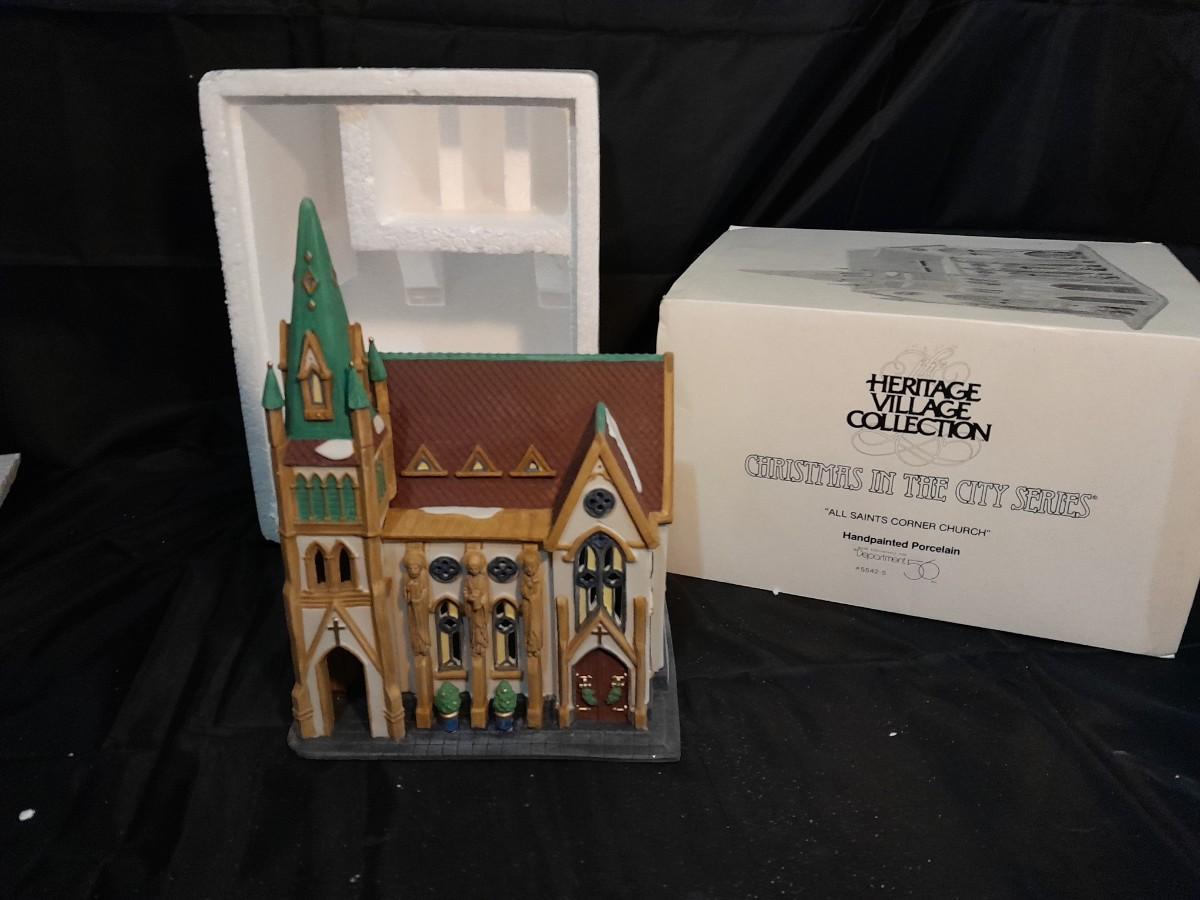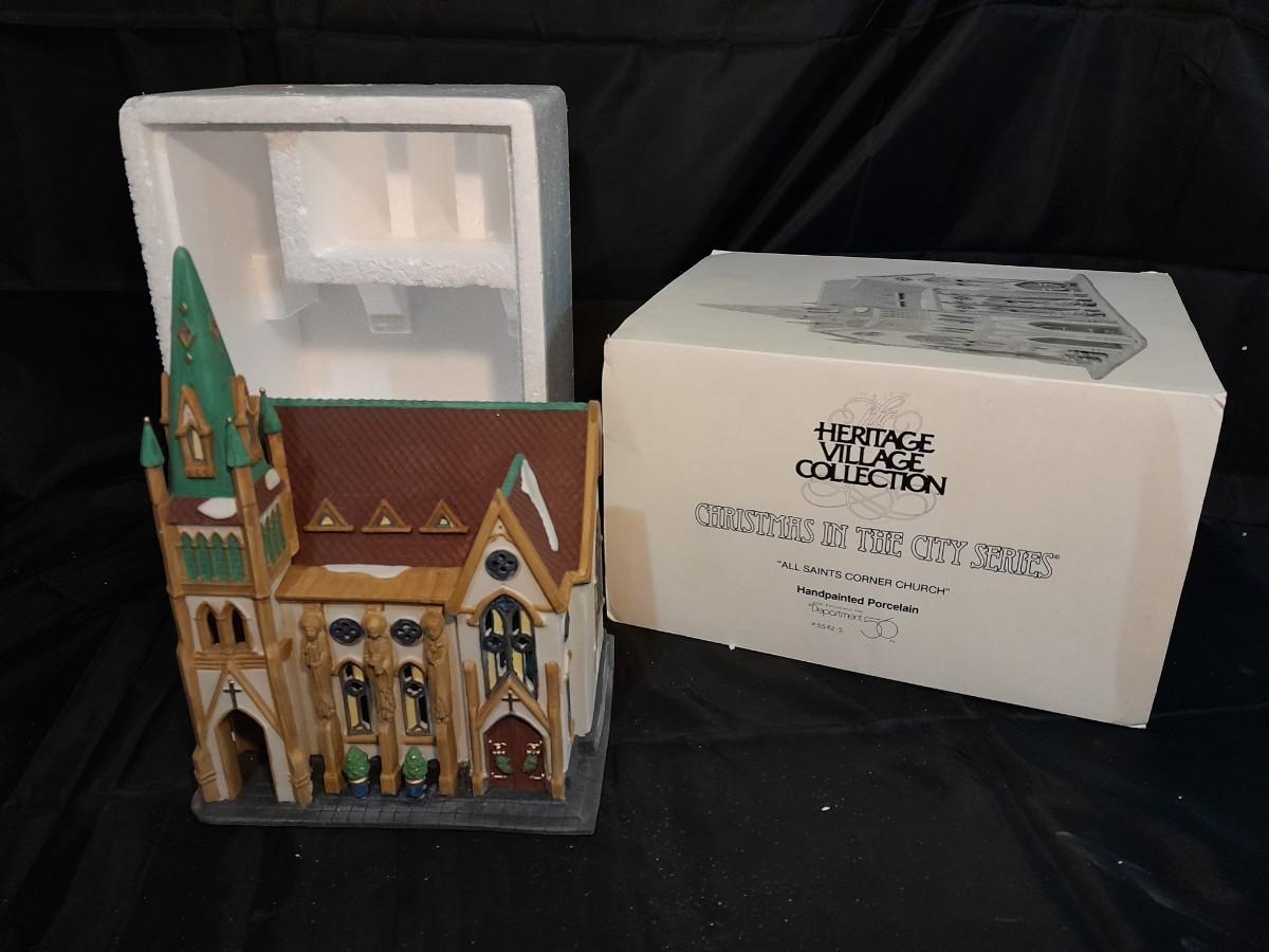 LOT 44 DEPT. 56 HERITAGE VILLAGE COLLECTION CHRISTMAS IN THE CITY ALL SAINTS CORNER CHURCH