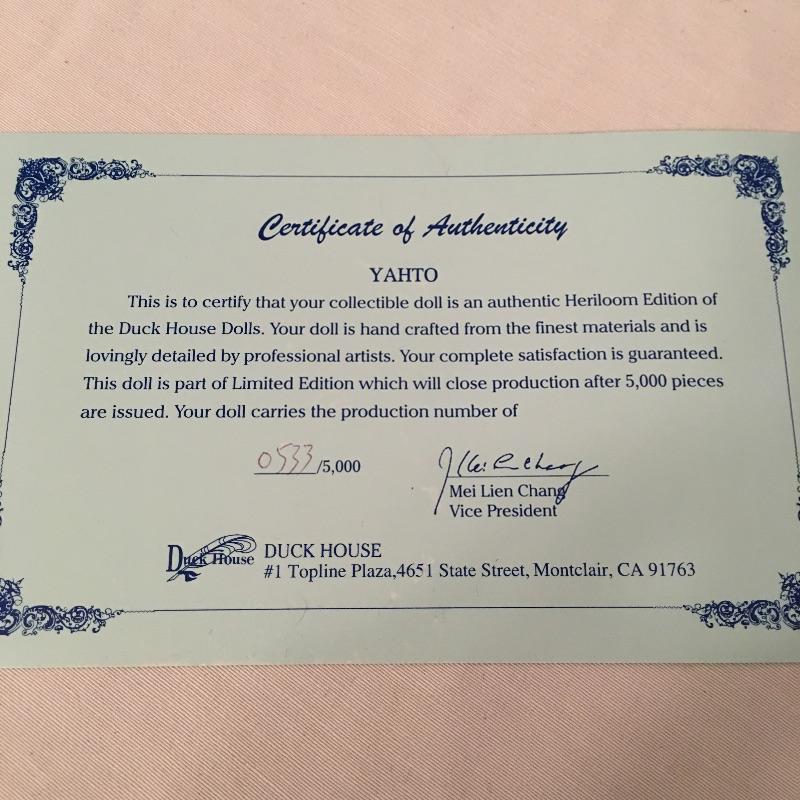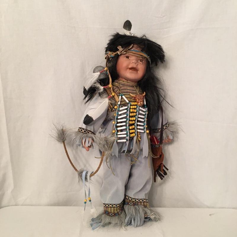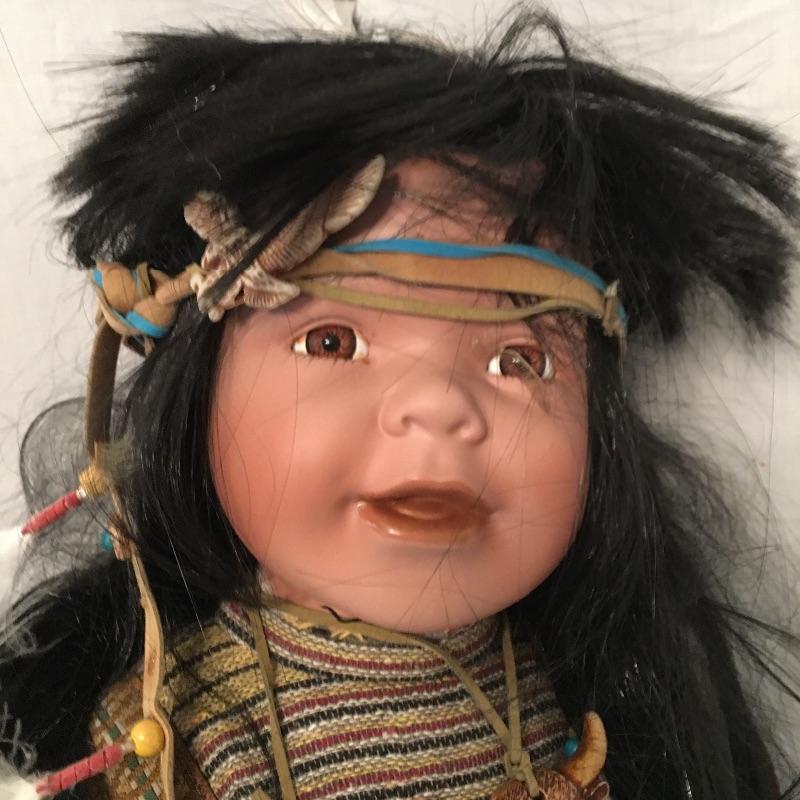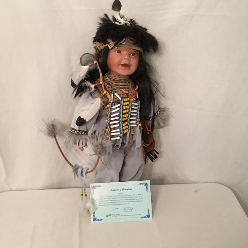 Another amazing Native American Duck House doll titled Yahto. Doll is numbered doll and comes with COA. Doll measures approximately 22” tall.