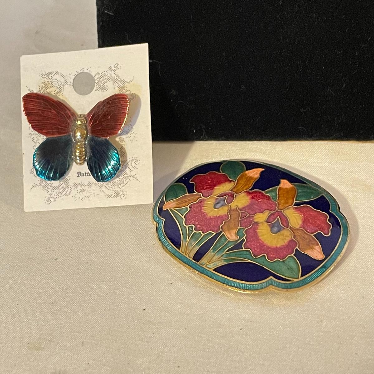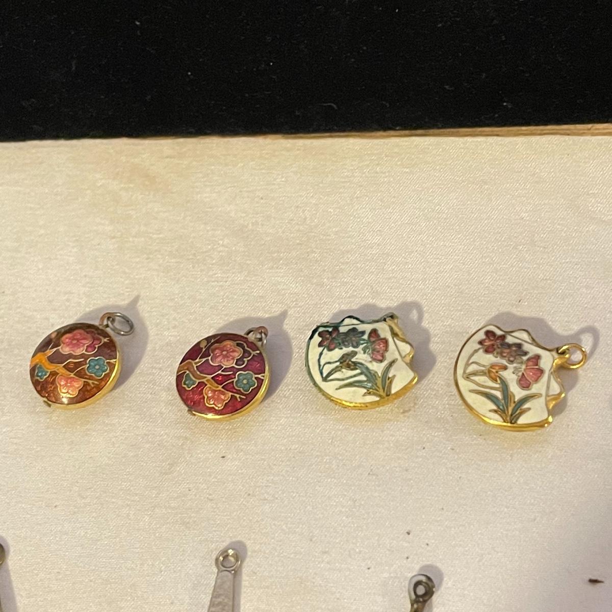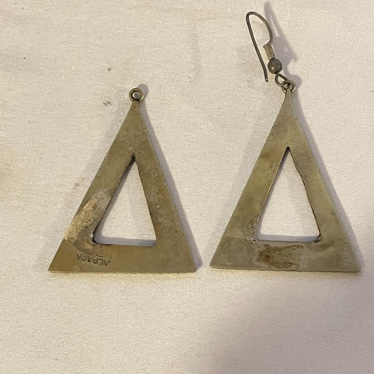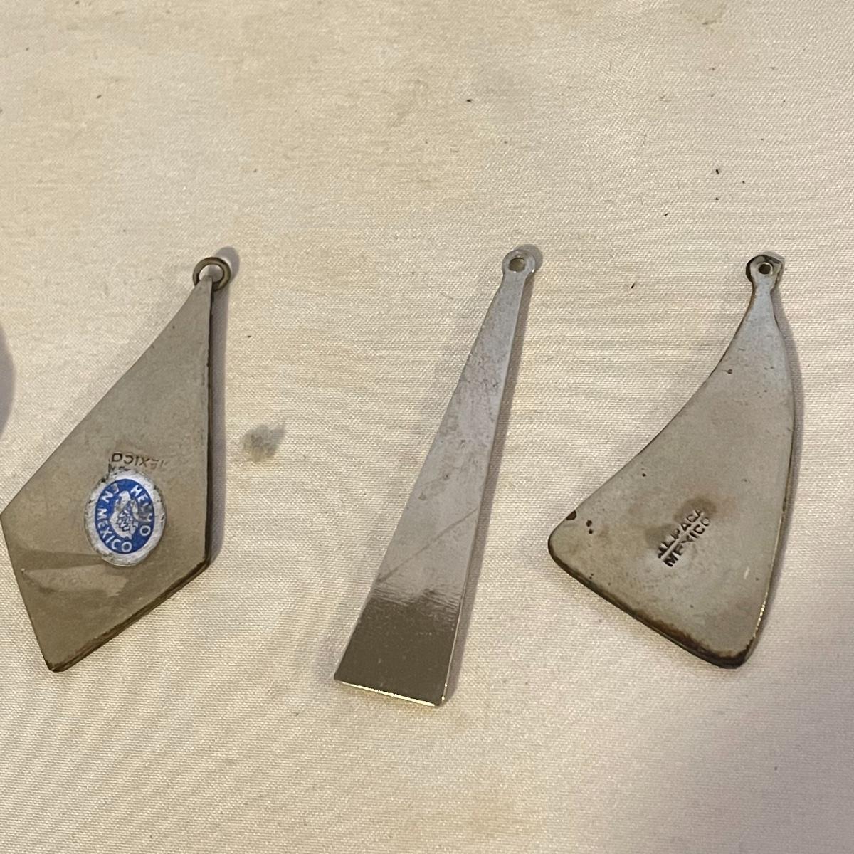 A bright collection of metal and enamel accents. The beauty of enamel is it is long lasting and rarely fades! Many pieces are from Mexico, all known markings are shown in photos. Lot features an earring and brooch set, two beaded 22” necklaces, more earrings and stud pendants along with brooches and a belt buckle. One earring has a small chip and is missing it’s hook, this pair can either be repaired by the buyer or upcycled to stud pendant or necklace pendants. See images. Shipping available.