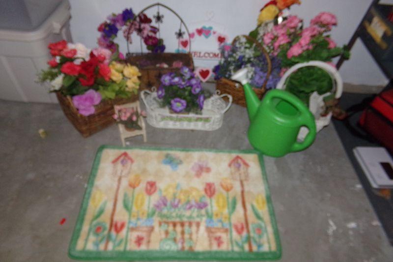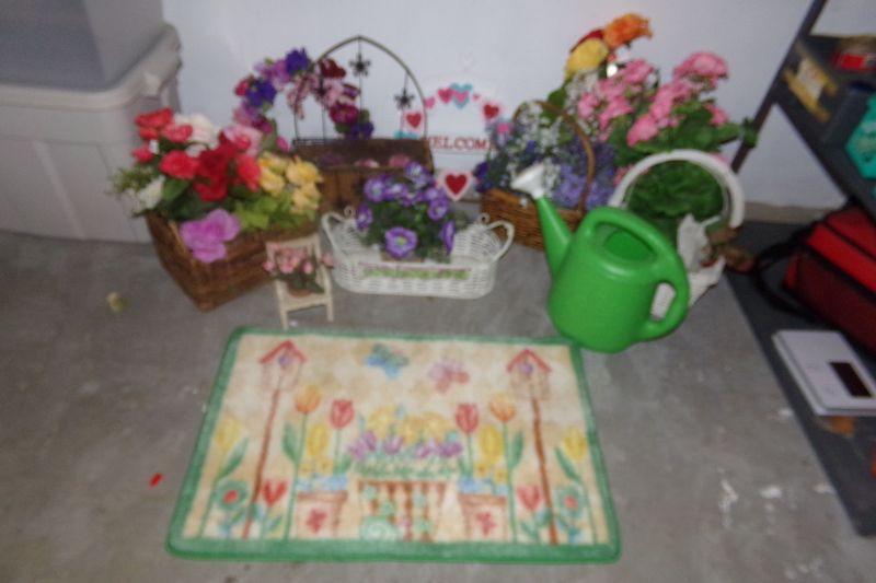 PLANT HOLDERS. SILK FLOWERS, WATERING CAN, WELCOME SIGN, MAT, BASKETS AND MORE