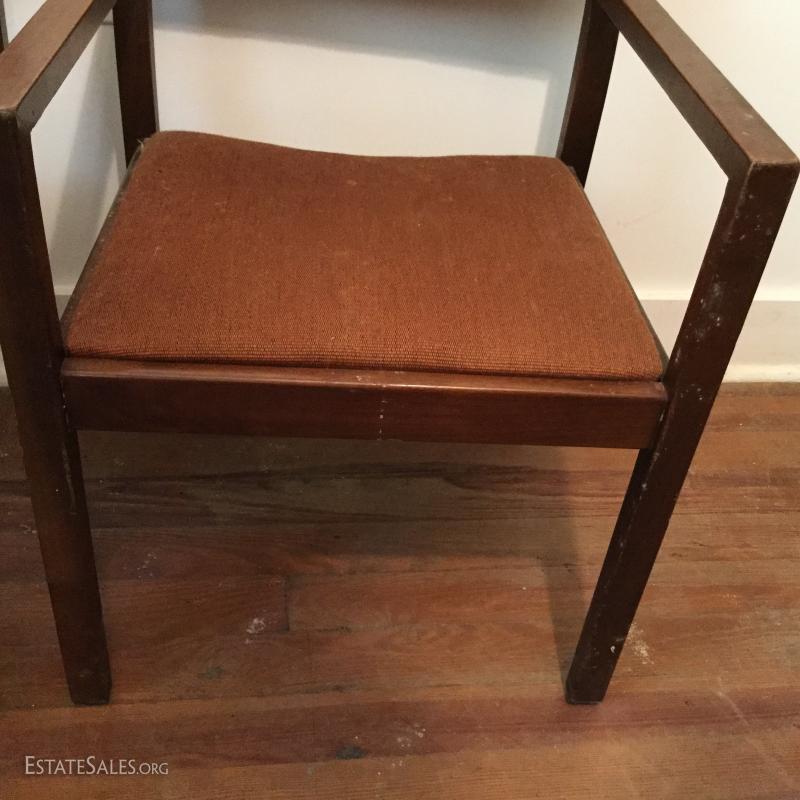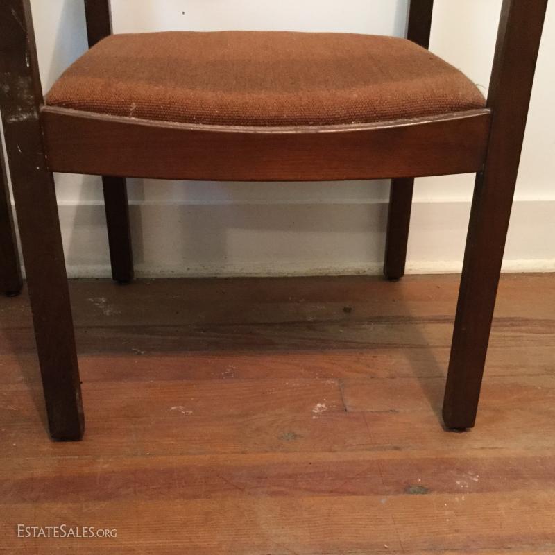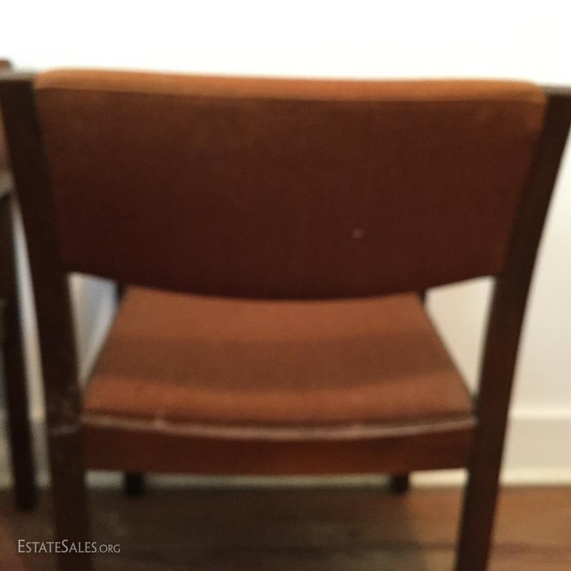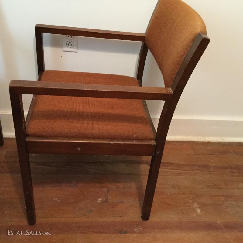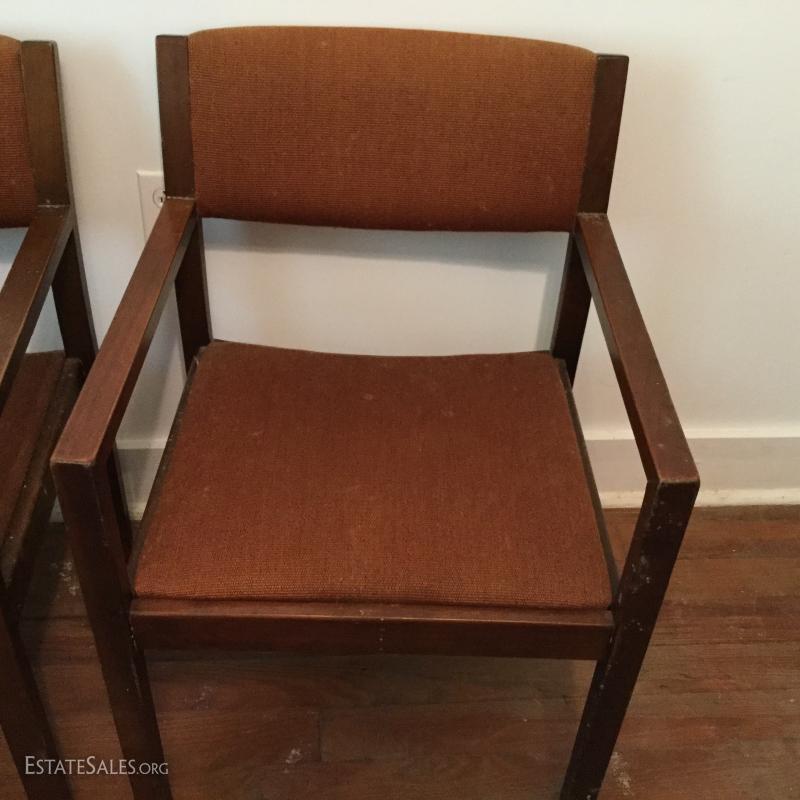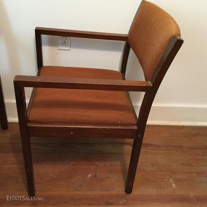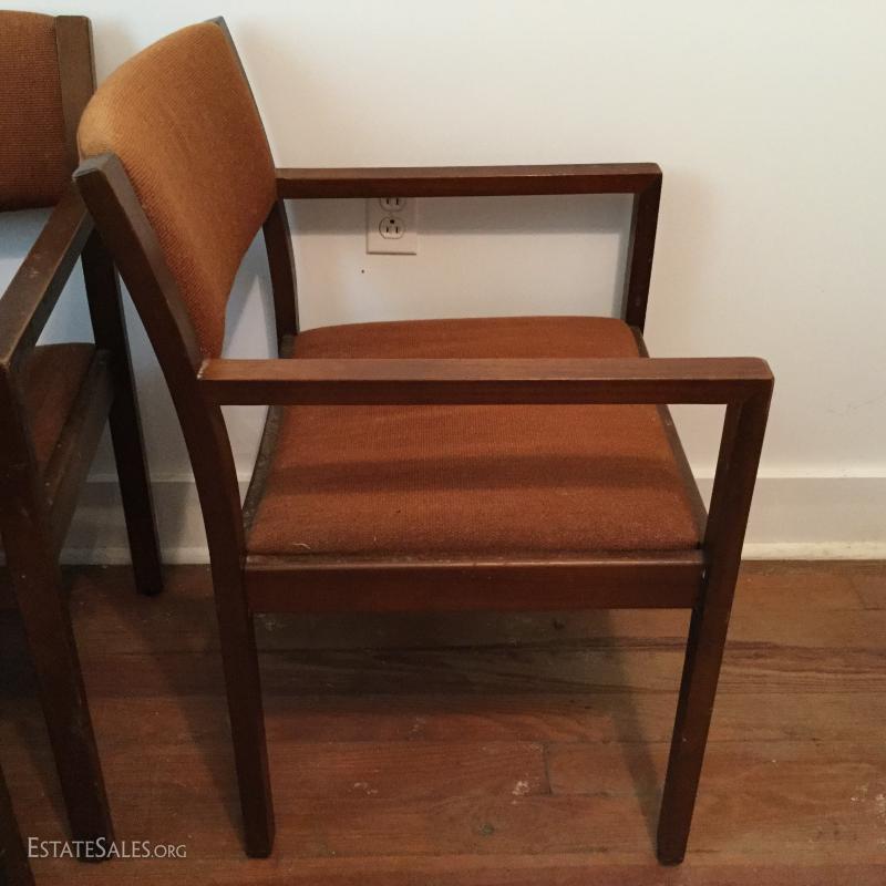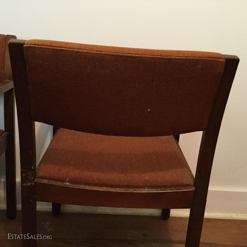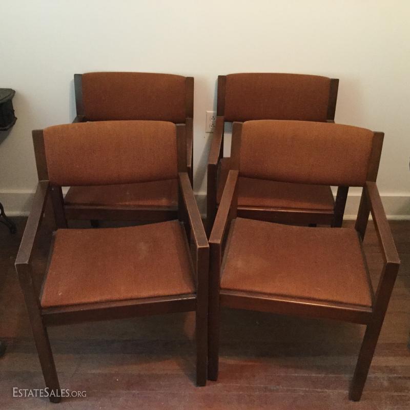 Four MCM chairs by Gunlocke Company Inc. Brownish orange woven fabric. Some need to be cleaned.