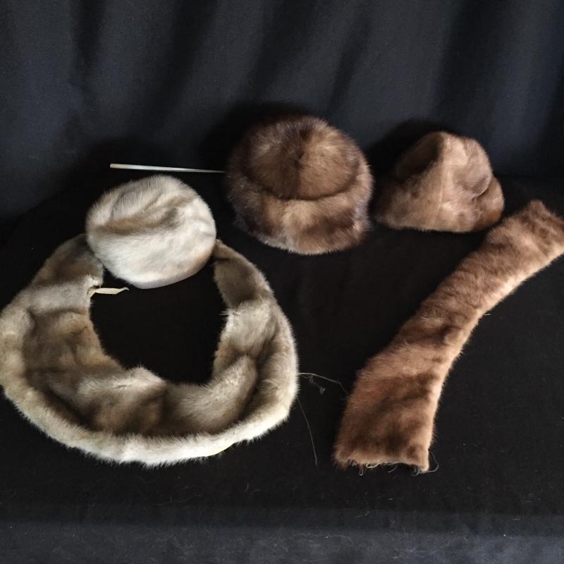 Keep yourself warm and stylish this winter! Enchanting fur coat has French label. Lot also includes three hats with two collars. One collar has torn backing. See pics. Shipping available.