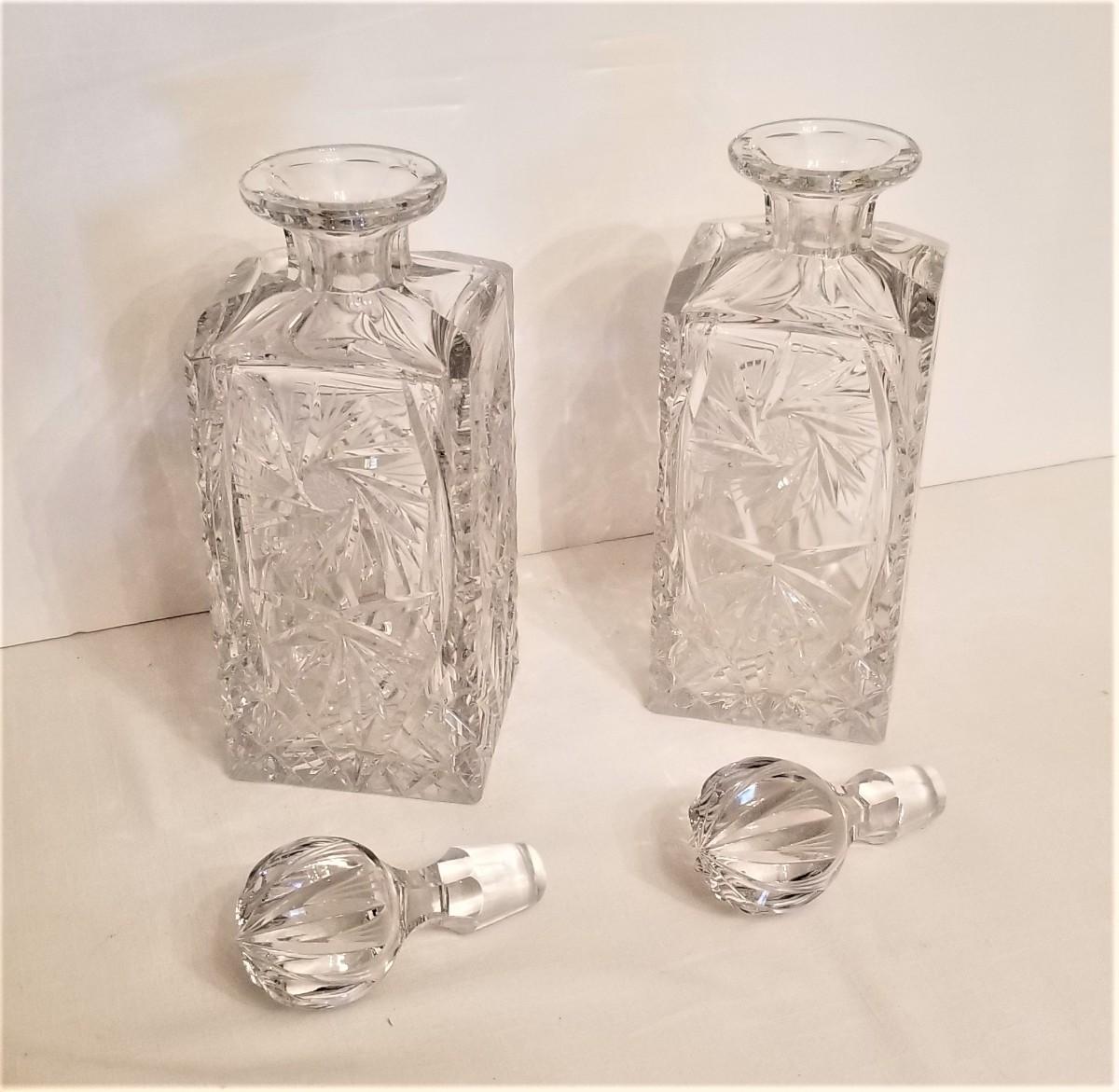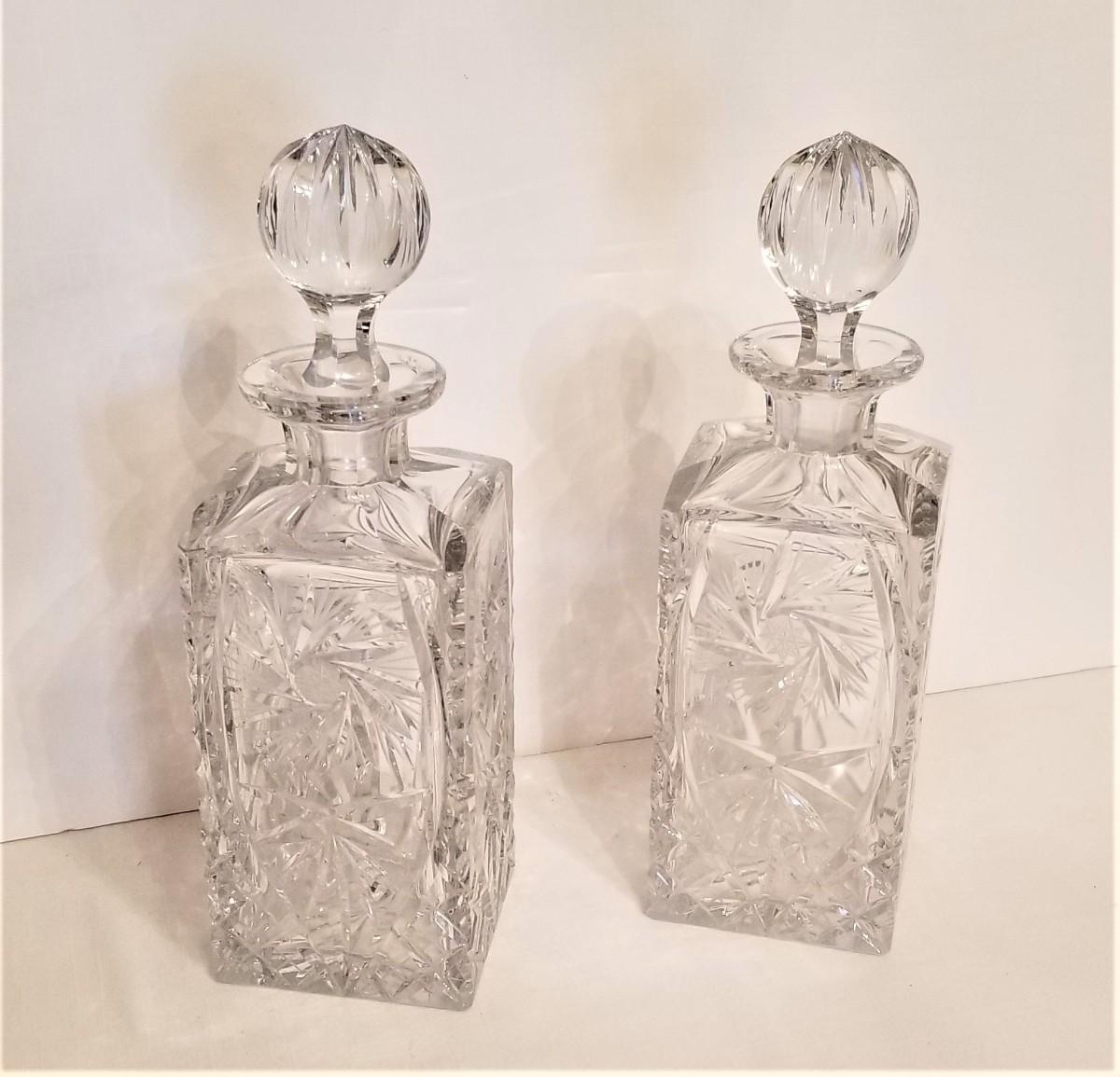Matched pair of Crystal Decanters - great condition - heavy - pressed and cut elements. They will look great on your bar!