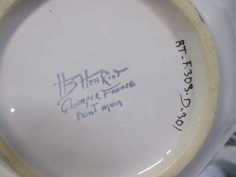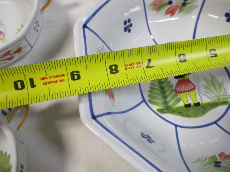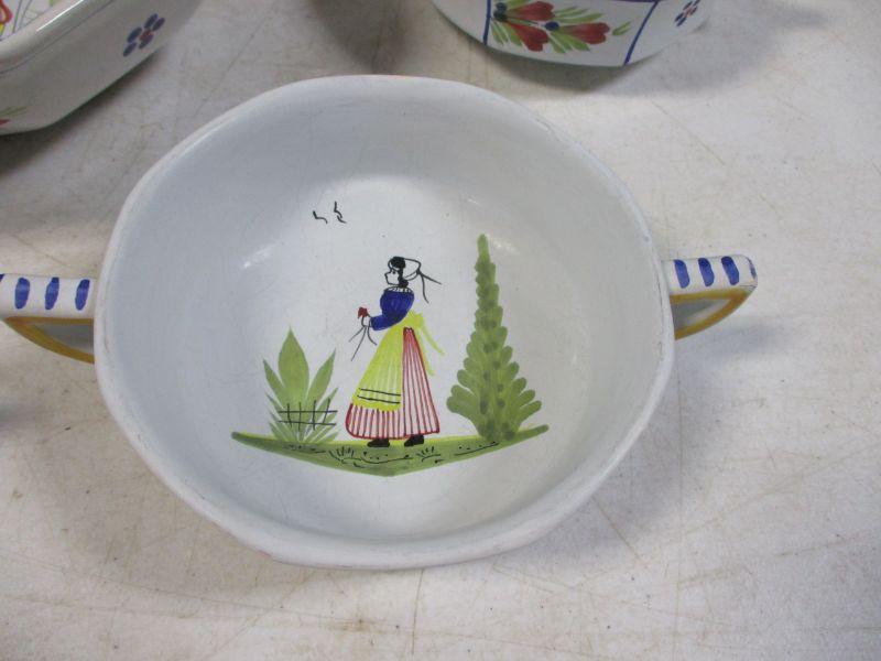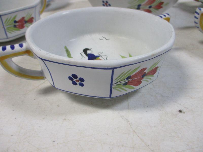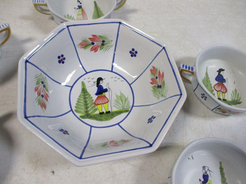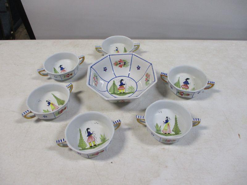 Lot 44 - HB Quimper France Serving Bowl & 6 Handled Bowls