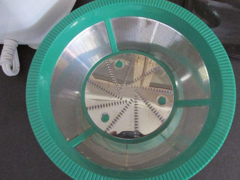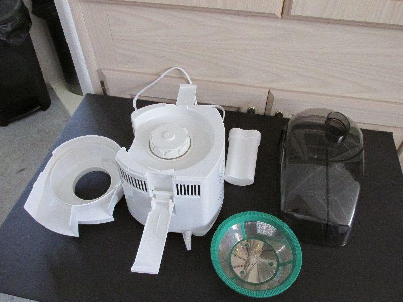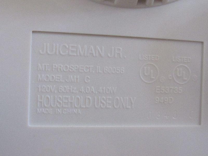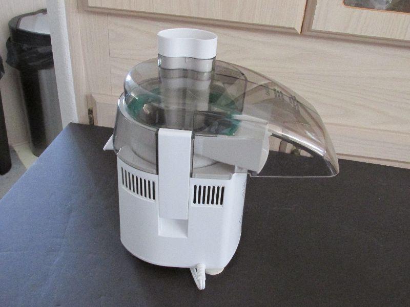 White Jucieman Jr. Automatic Juice Extractor. In very good condition. Only used a couple times. Tested and powers on. No box.