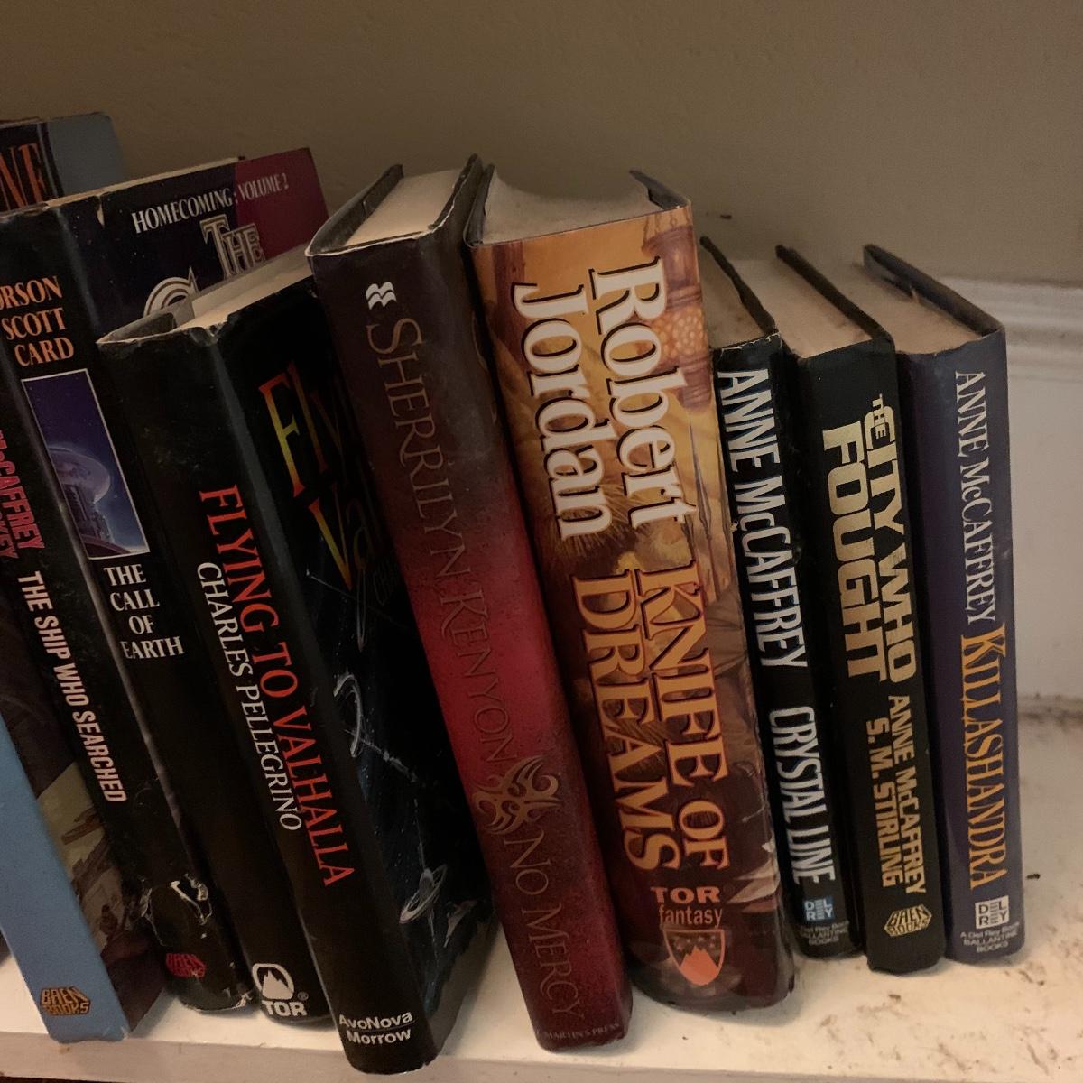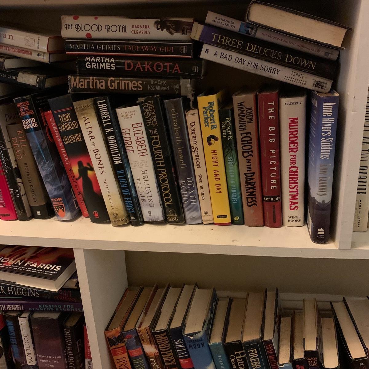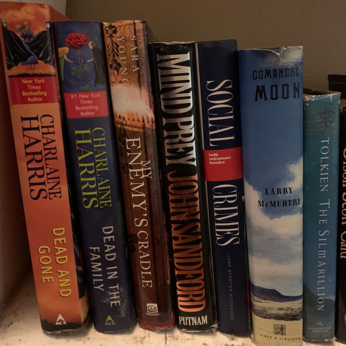 If you like being on the edge of your seat while reading, this is the perfect collection to add to your library. These books are suspense and thriller books. You’ll find books in this lot by authors such as J.R.R. Tolkien, Charlaine Harris, Anne McCaffrey, Stephen King, Mary Higgins Clark, and many more! Most, if not all of the books are hardcover. There are about 80 books found in this collection. Shipping available.
