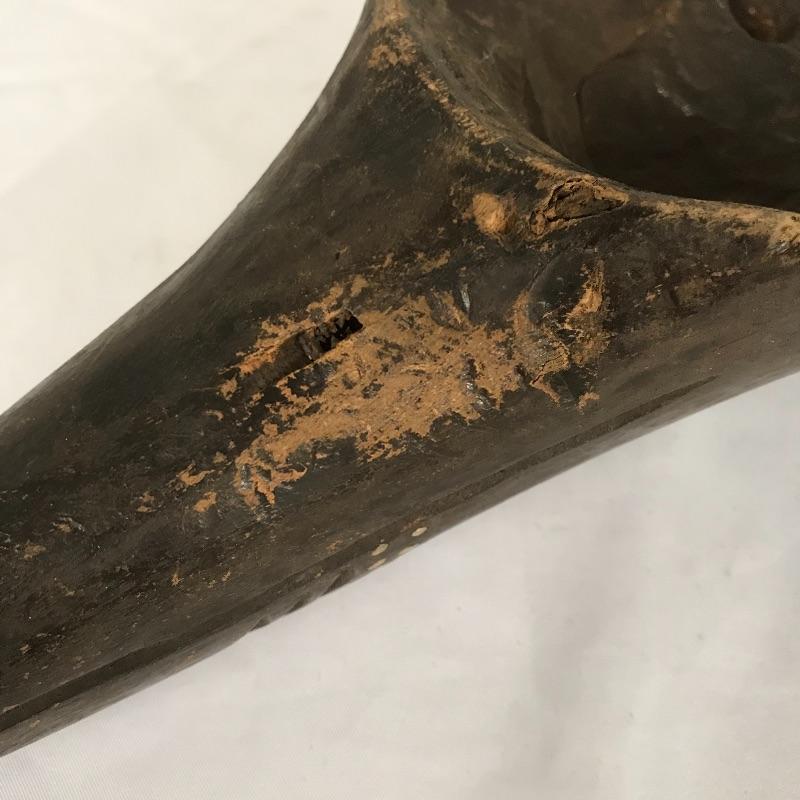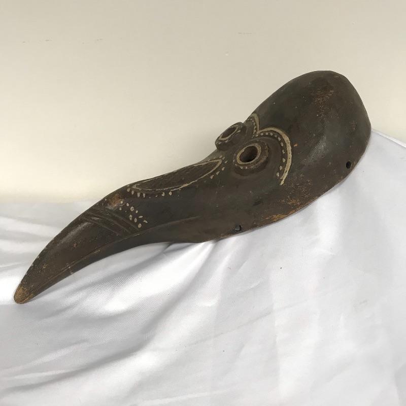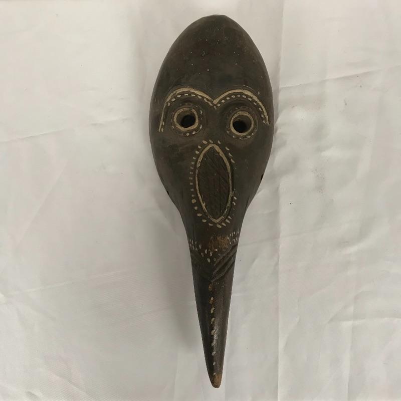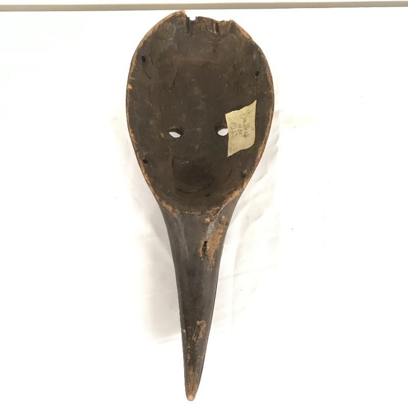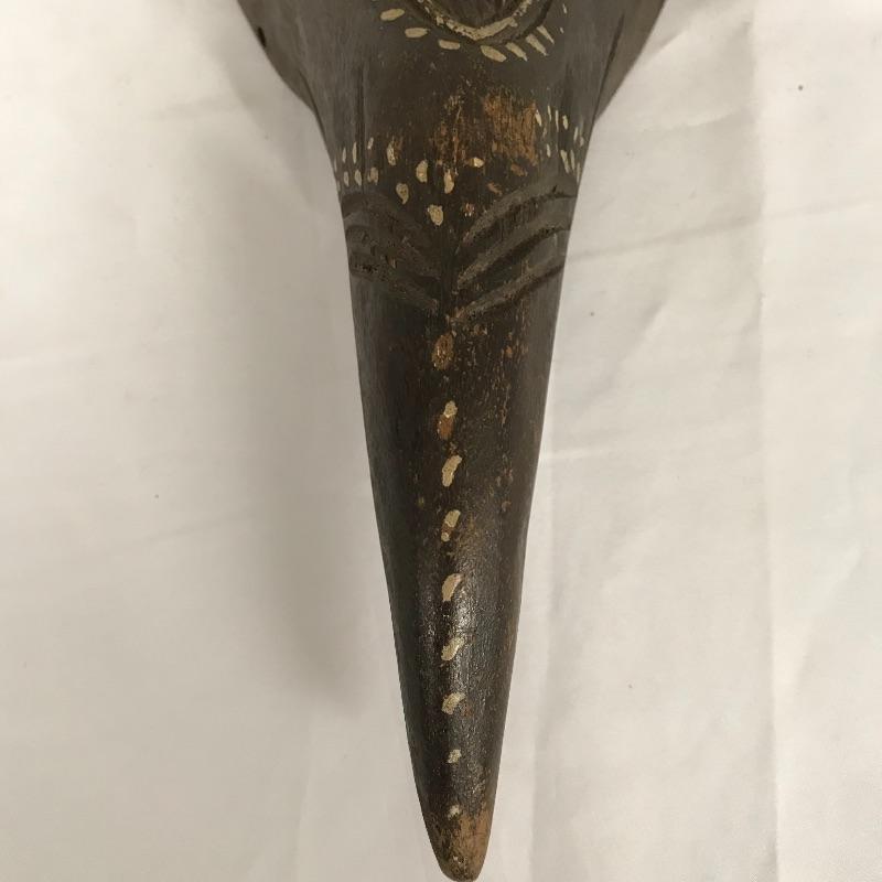 Long nosed beak-like mask measuring approximately 15.5” x 5.5” x 3.5”. Note on backside is masking tape and appears to be easily removed.