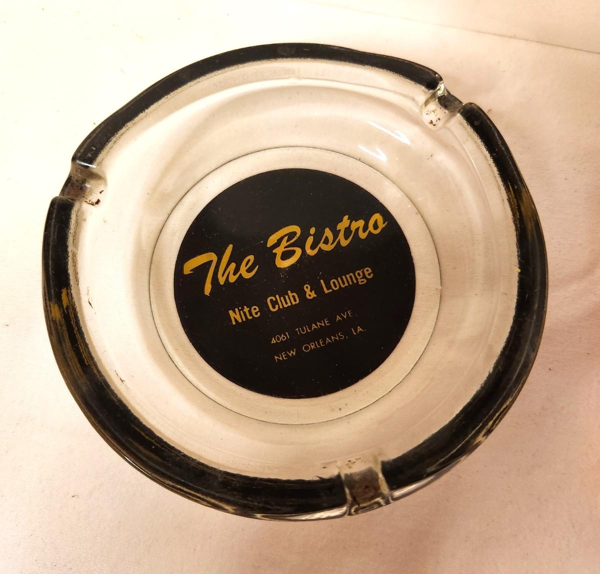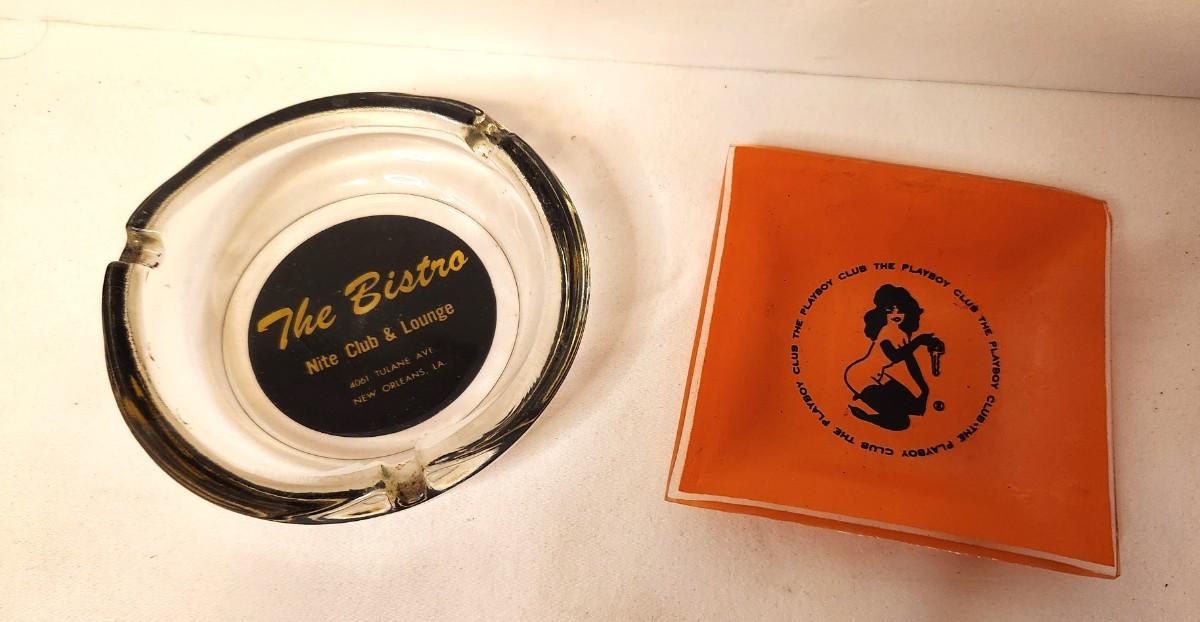 Two vintage ashtrays - The Bistro, which used to be at 4061 Tulane Ave (small flea bit to inner rim, and the Playboy Club, which was in the French Quarter. Both in vintage condition.
