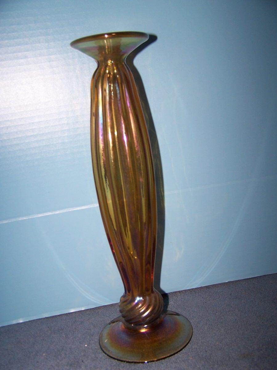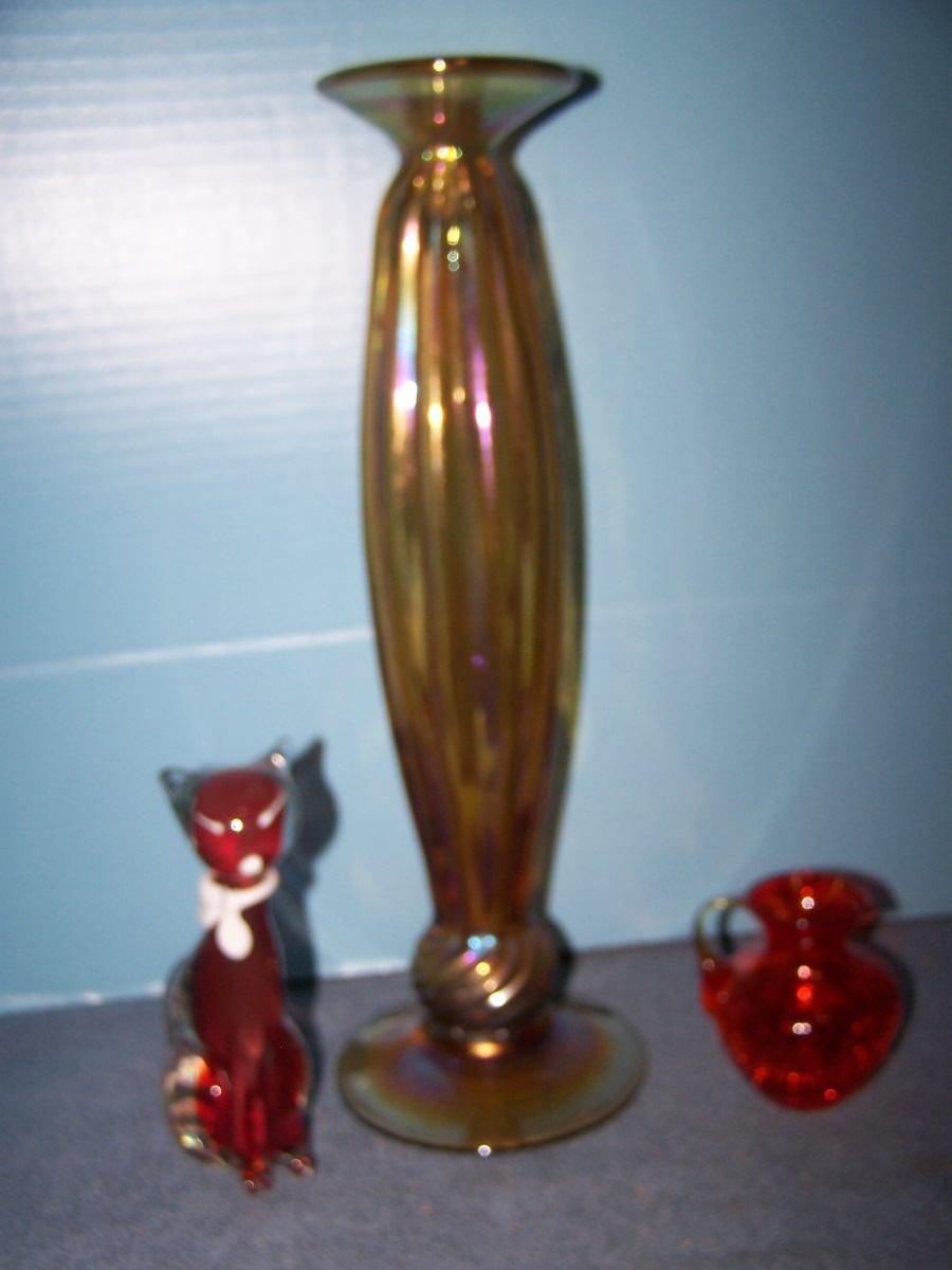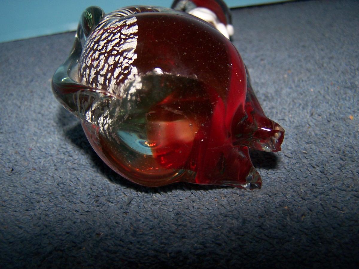 THIS IS LOVELY COLORFUL ART GLASS!!! UNMARKED..CAT-6'' TALL, HAS SMALL FLAKE ON FOOT... OTHERWISE, LIGHT WEAR...