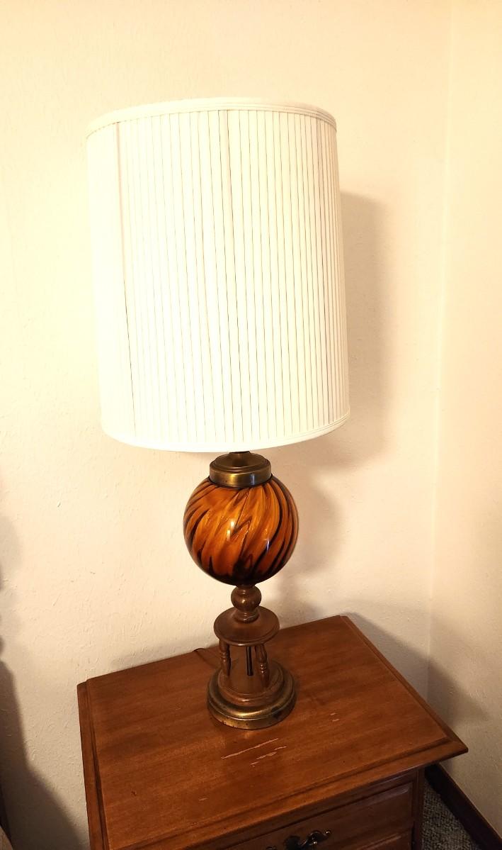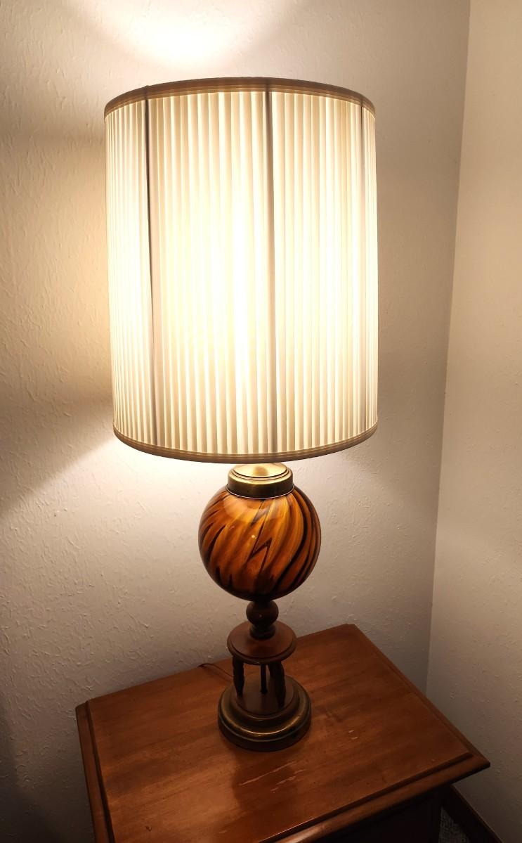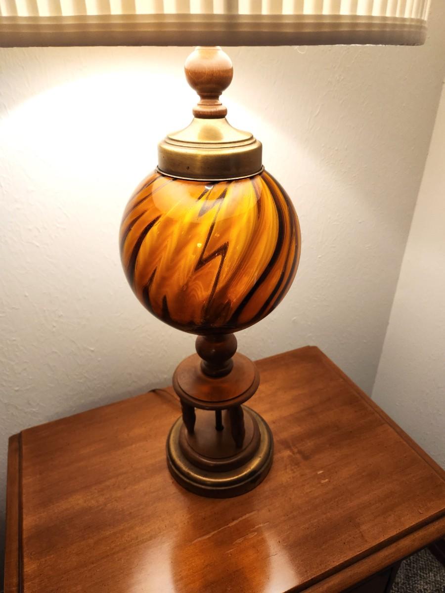 Harvest Gold Glass Accent MCM Table Lamp - works - 38" tall - good vintage condition.