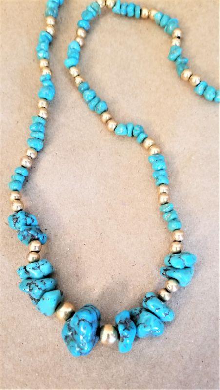 Lot #44 - Nice natural SW Turquoise necklace with 14kt gold accent beads