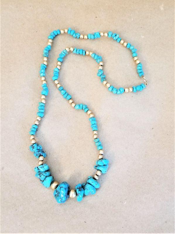 Here's a pretty thing - natural blue turquoise beads from the American Southwest made into a necklace with little 14kt gold (we had them tested at Southern Coin) spacers. 24" long.