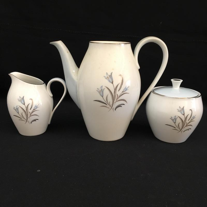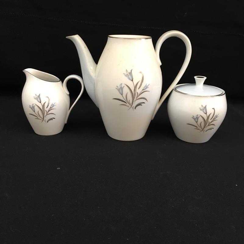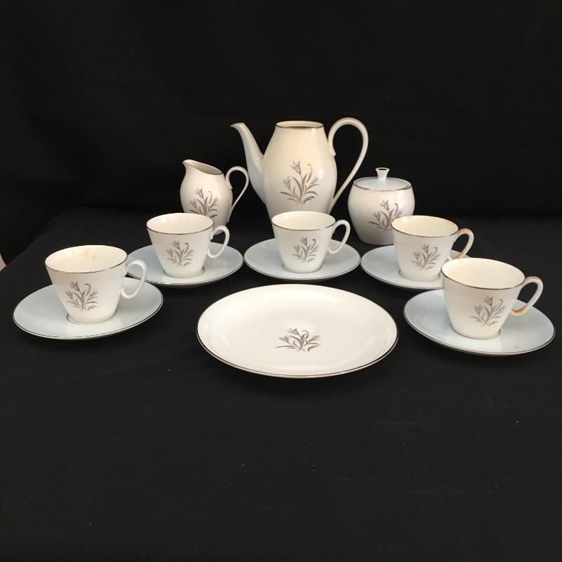 Noritake China includes six plates and saucers, five cups, cream pitcher, sugar bowl and teapot that is missing top, see pictures.