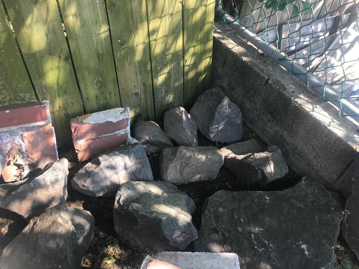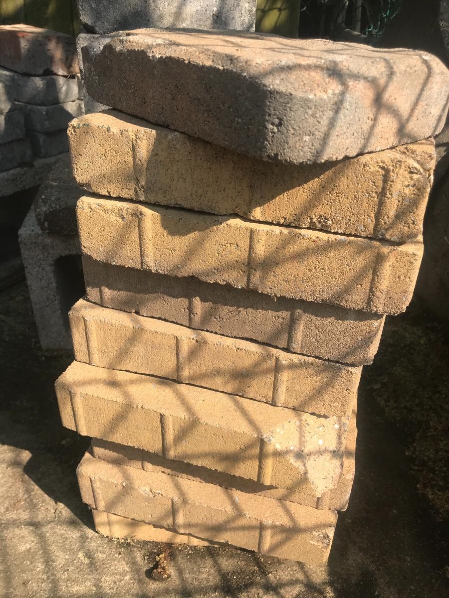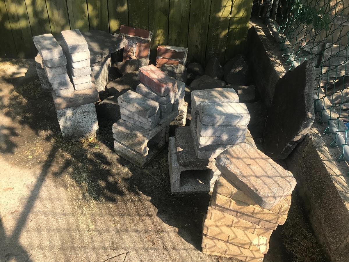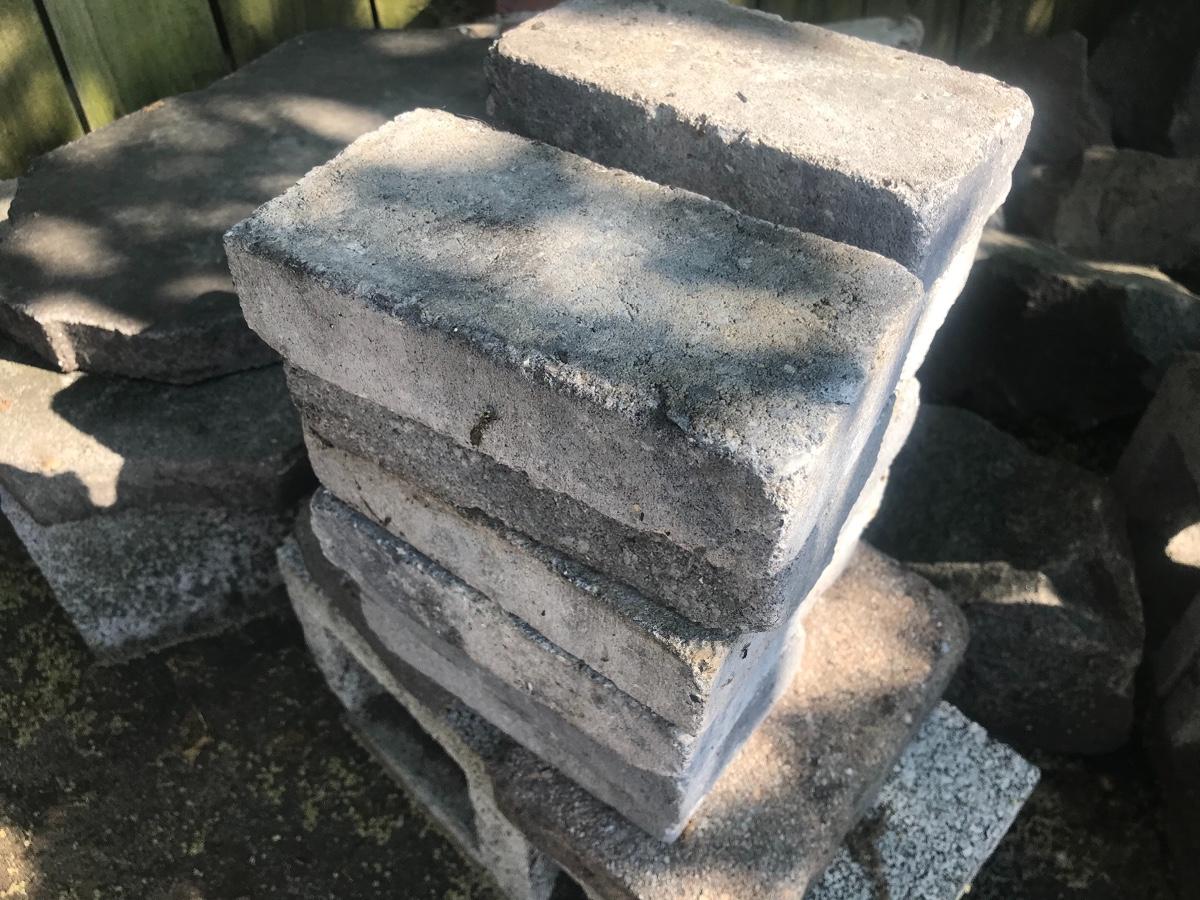 Two styles of pavers, old brick, cinder blocks, and landscaping rocks, largest is 20x13x3.5.