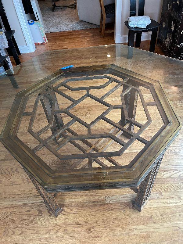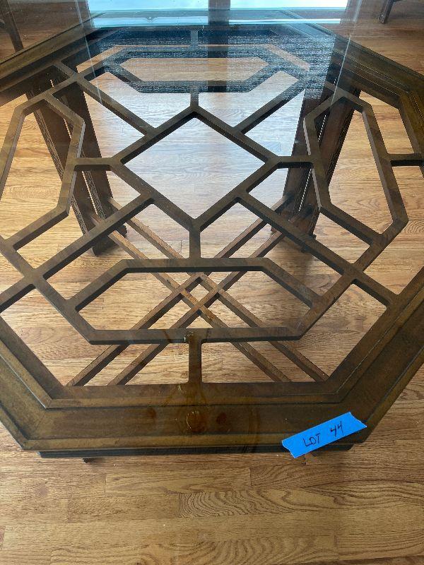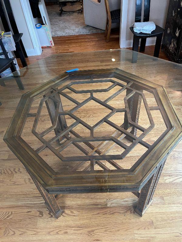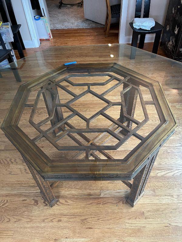 Lot 44 - Octagonal Oriental Glass Top Dining Room Table
