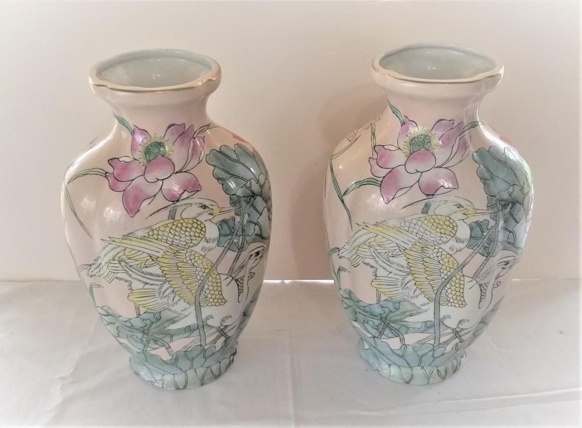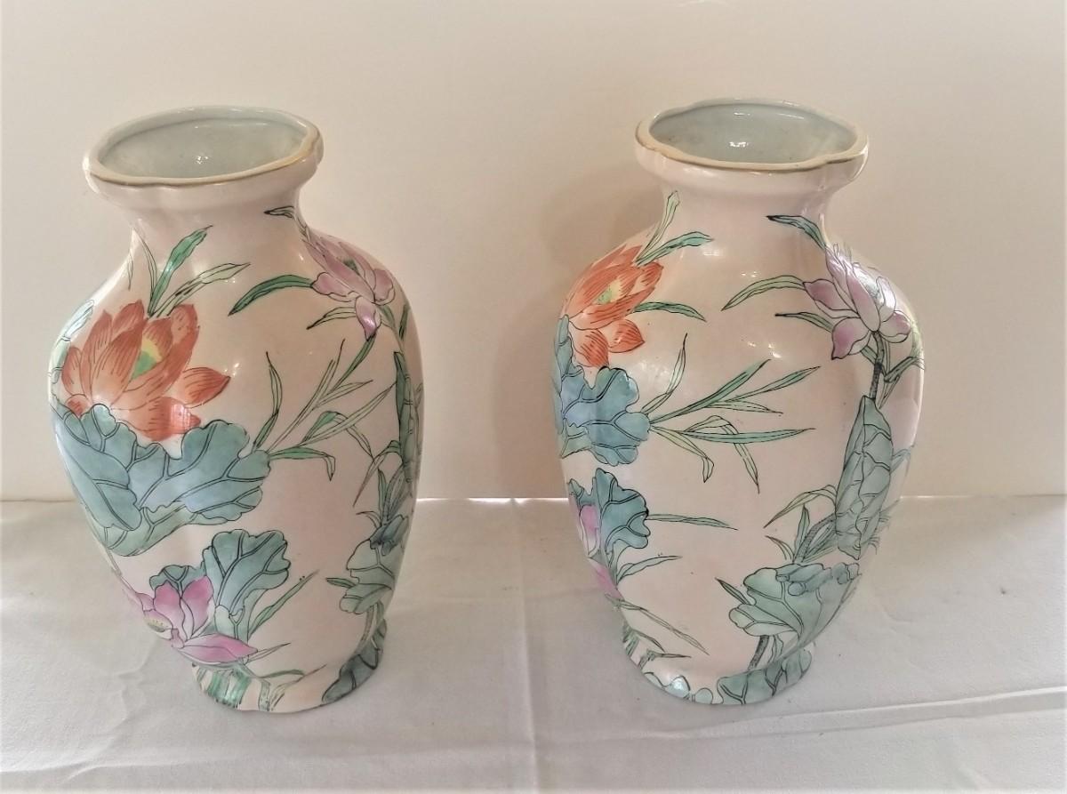 Pair of Contemporary Asian Style Vases - pastel colors - 12" tall - good condition.