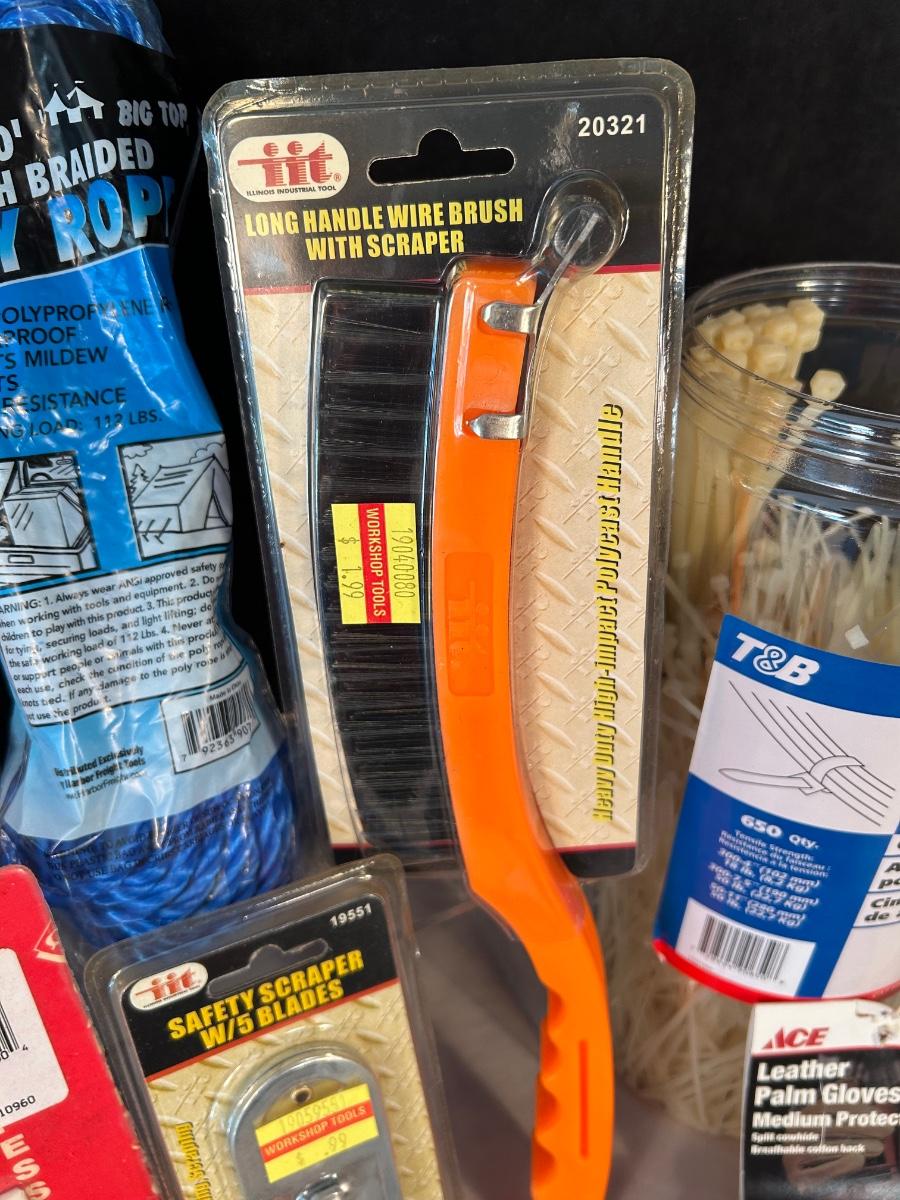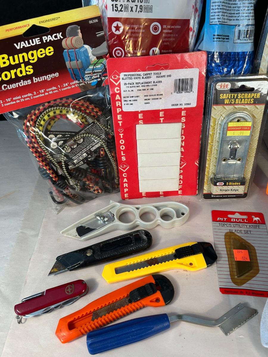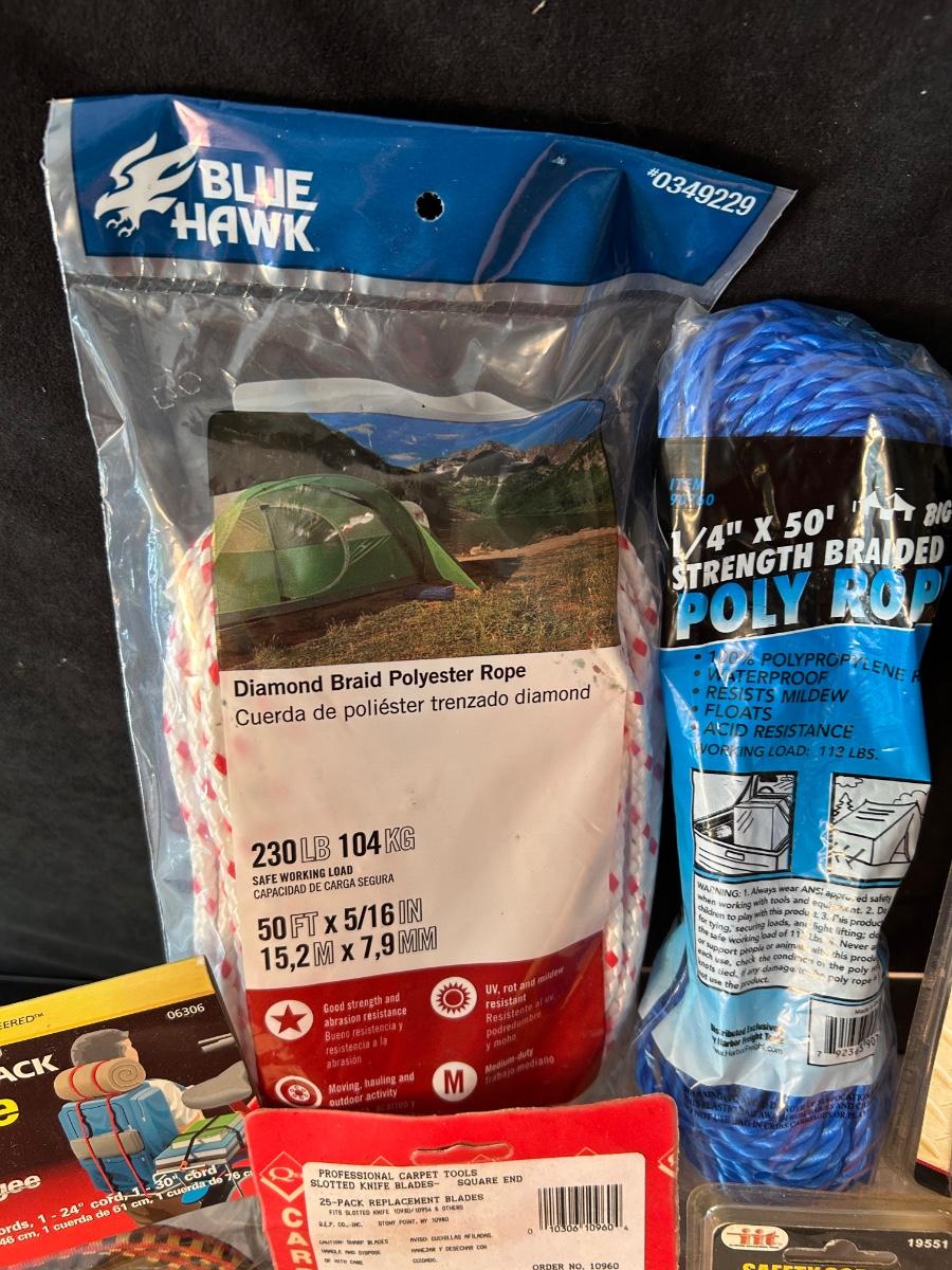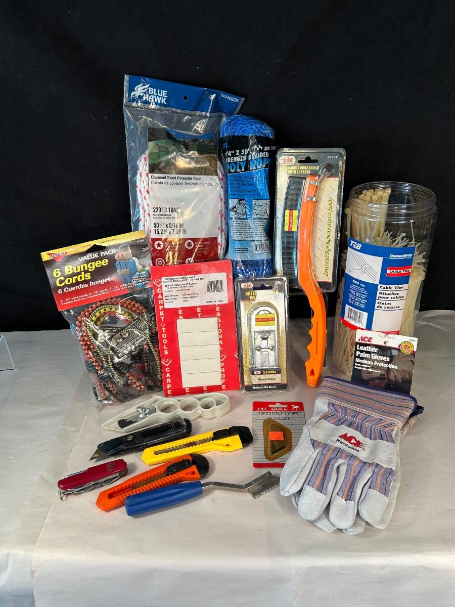 Lot 44. Ropes, Cutters, Zip Ties, Gloves, Bungee Cords