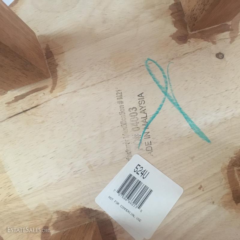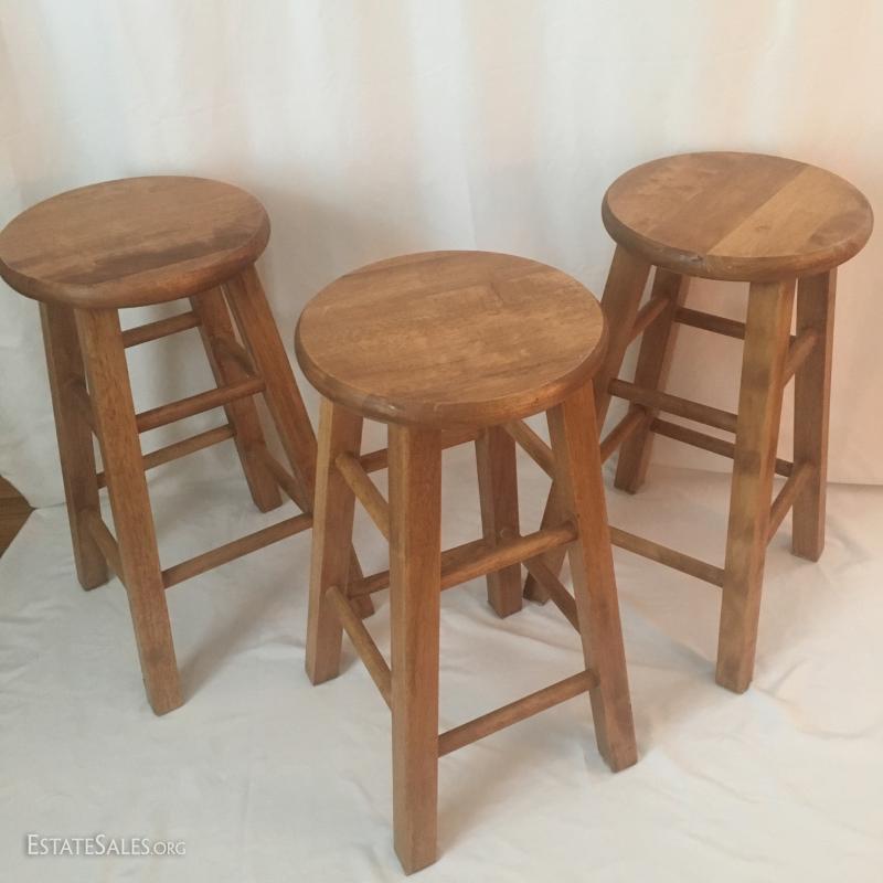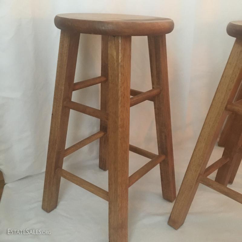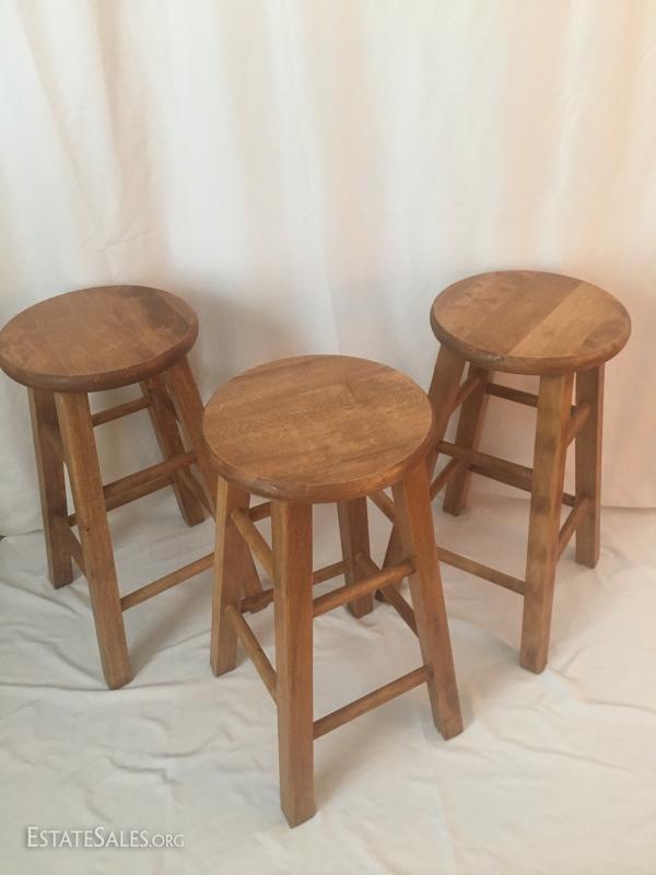 Solid wood and stained light cherry. Stools stand 24" tall. This lot is available for local pick up in Asheville, NC only.