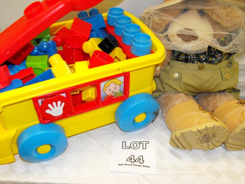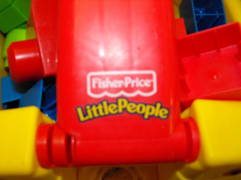 Fisher-Price Little People Pull behind wagon full of Lego like building blocks Good-VG