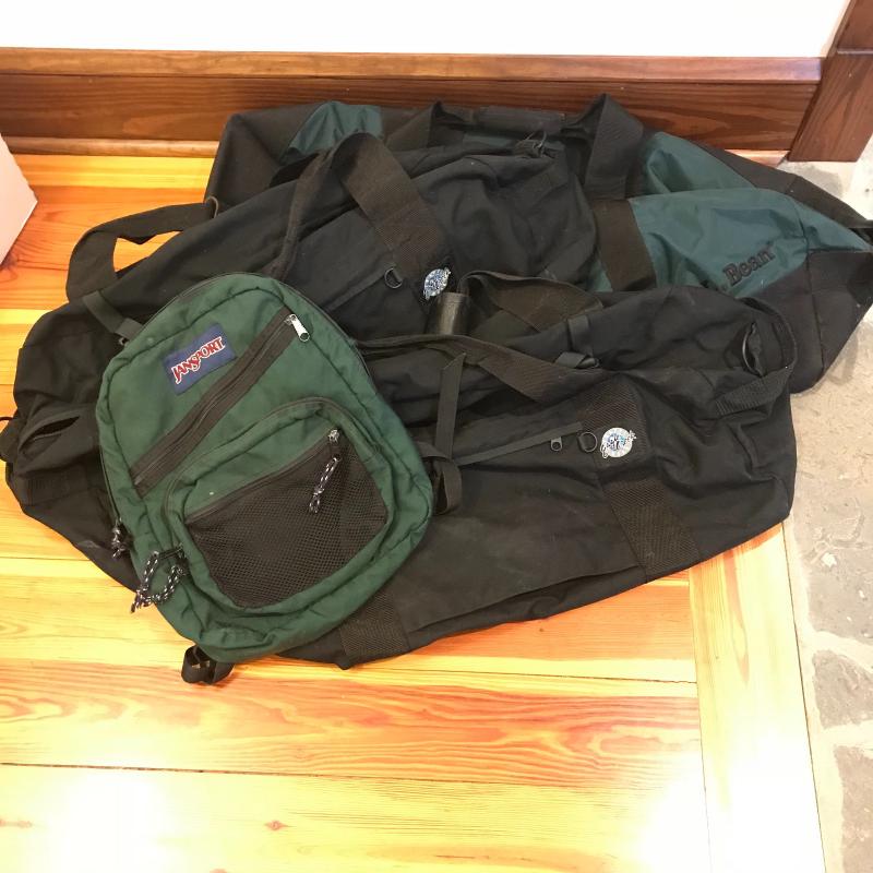 Small green Jansport day pack, L.L. Bean green roller duffel and two Eagle Creek duffles. Lot available for shipping or local pick up. Dimensions may create price increase for shipping as roller duffle does not fold up. Please call your local UPS store for an estimate prior to bidding.