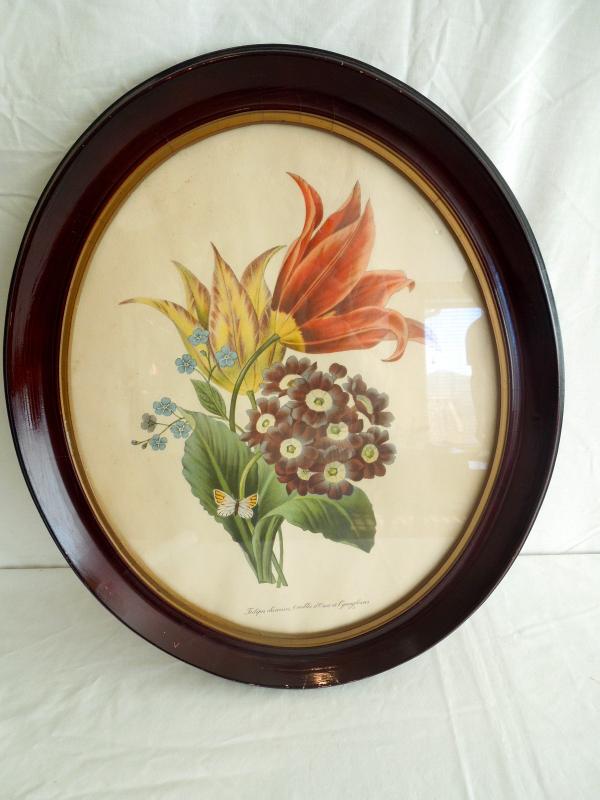 Lot 44 Vintage Framed Oval Lithograph of Tulips