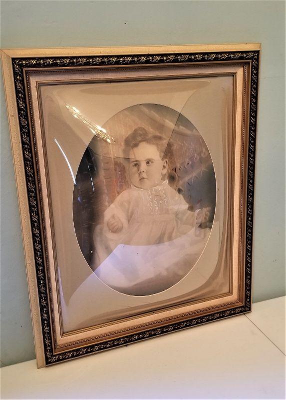 Lot #44  Vintage Hand colored baby portrait in bubble glass frame