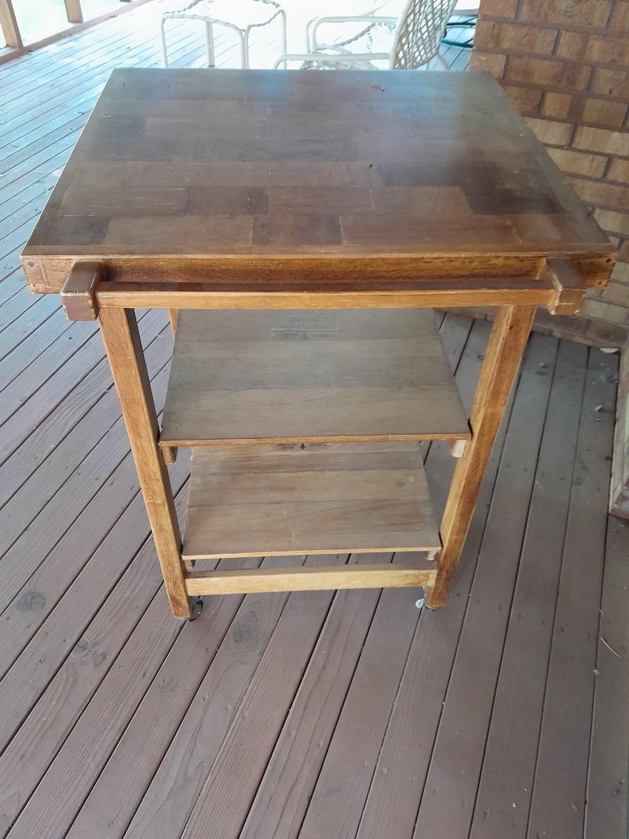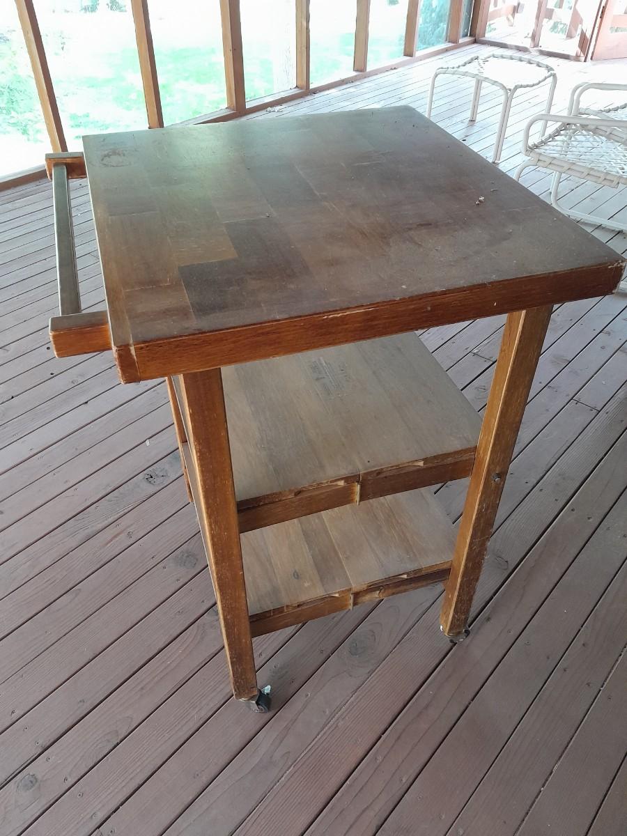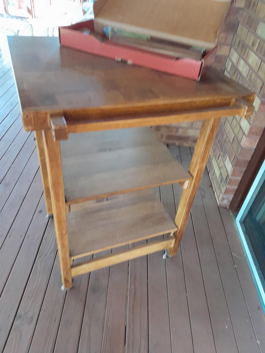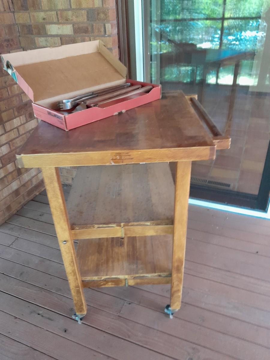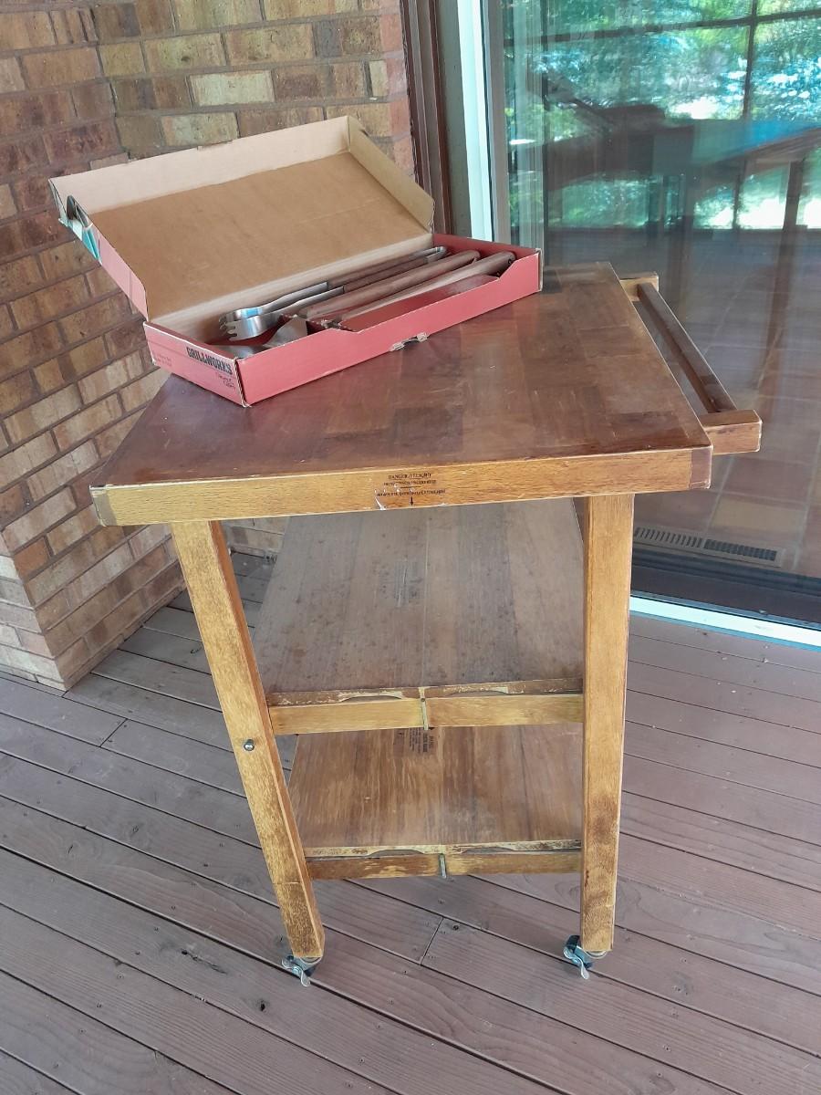 WHEELED KITCHEN CART WITH NEW CHICAGO CUTLERY GRILL UTENSILS 36" X 23" X 24.5"
