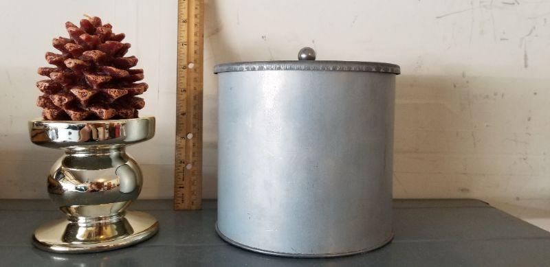 LOT #441: Vintage Metal Canister, Made in Italy Candle Holder and Unused Pinecone Holiday Candle