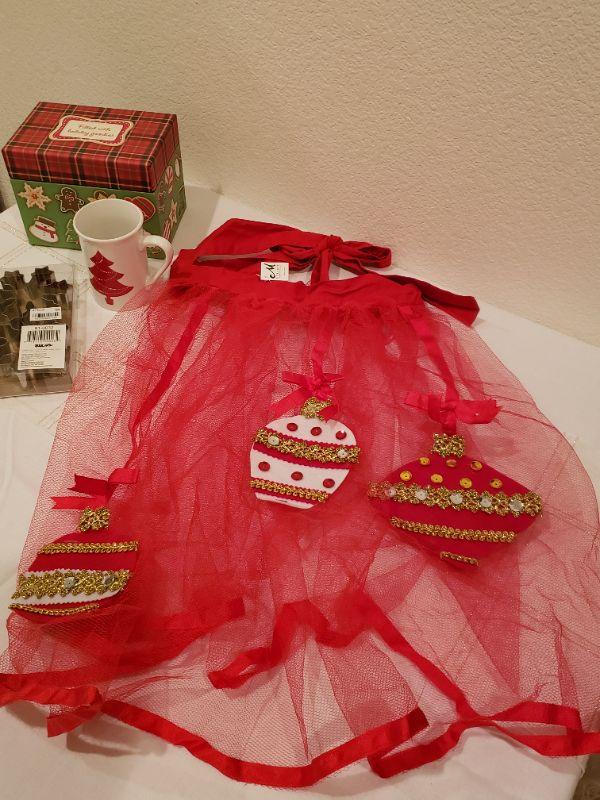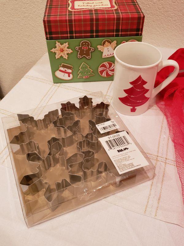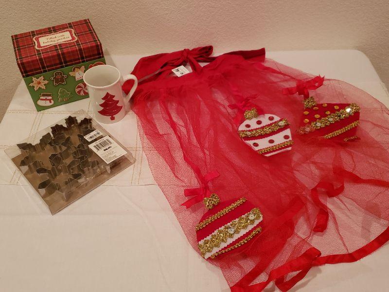 Lot 441: NEW Holiday Kitchen Lot (Apron, Cookie Cutters, Recipe Box & Coffee Cup)